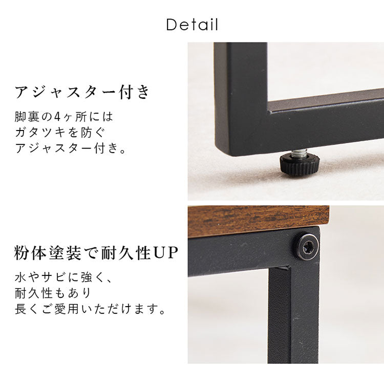 天板:合成樹脂化粧繊維板(メラミン樹脂)、フレーム:スチール