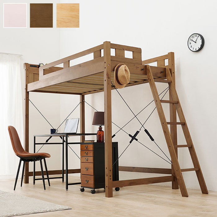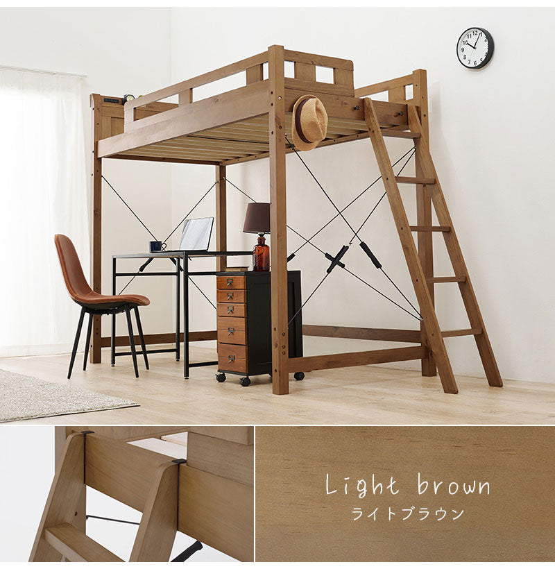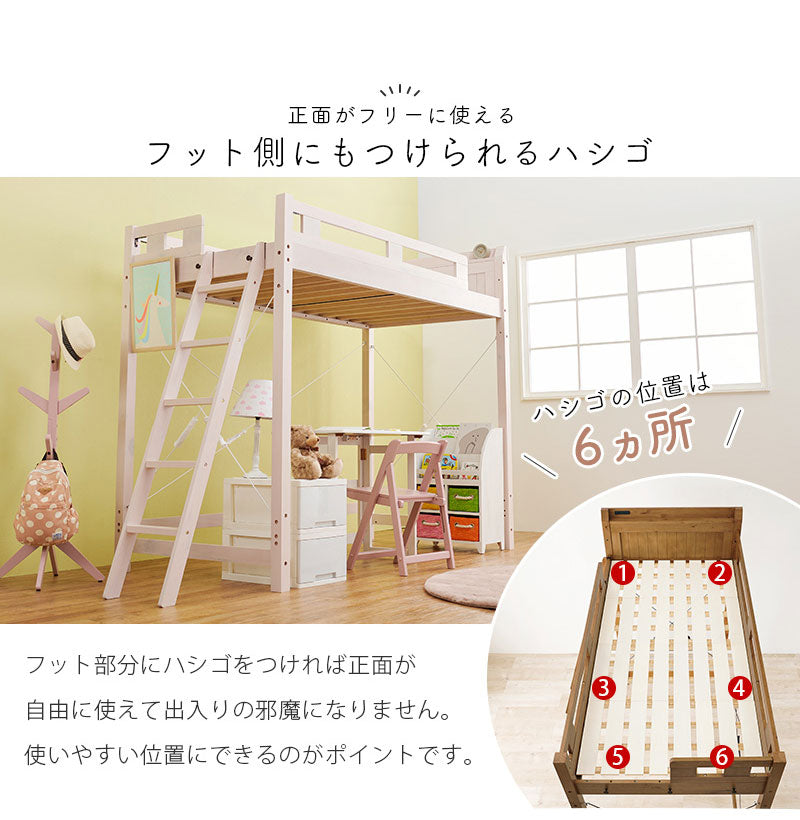 頑丈ロフトベッド 耐荷重350kg 敷布団OK ハイタイプ ベッド下140cm 天然木 シングル ロフトベット すのこベッド 宮付き 宮棚付き コンセント 子供用 新生活 北欧(代引不可)