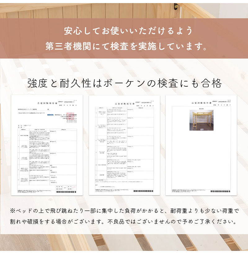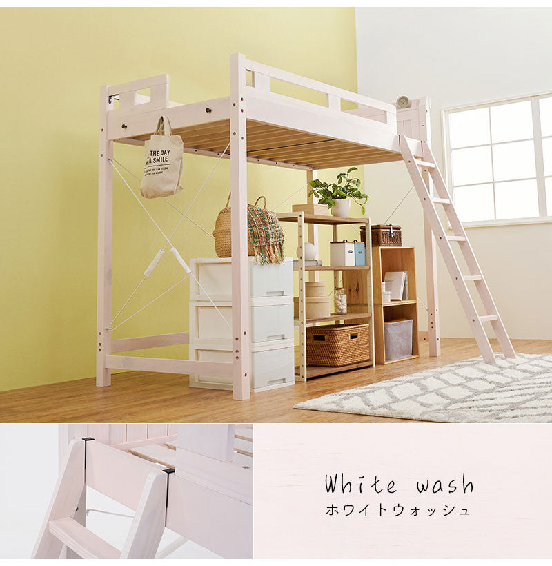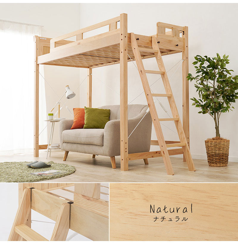 ハシゴが足元にもかけられるのでベッド下スペースの出入りがスムーズ。木製ならではのぬくもりを感じられる頑丈なすのこベッドです。