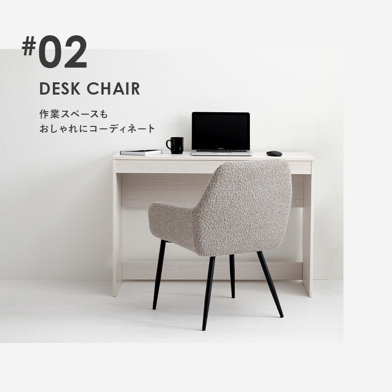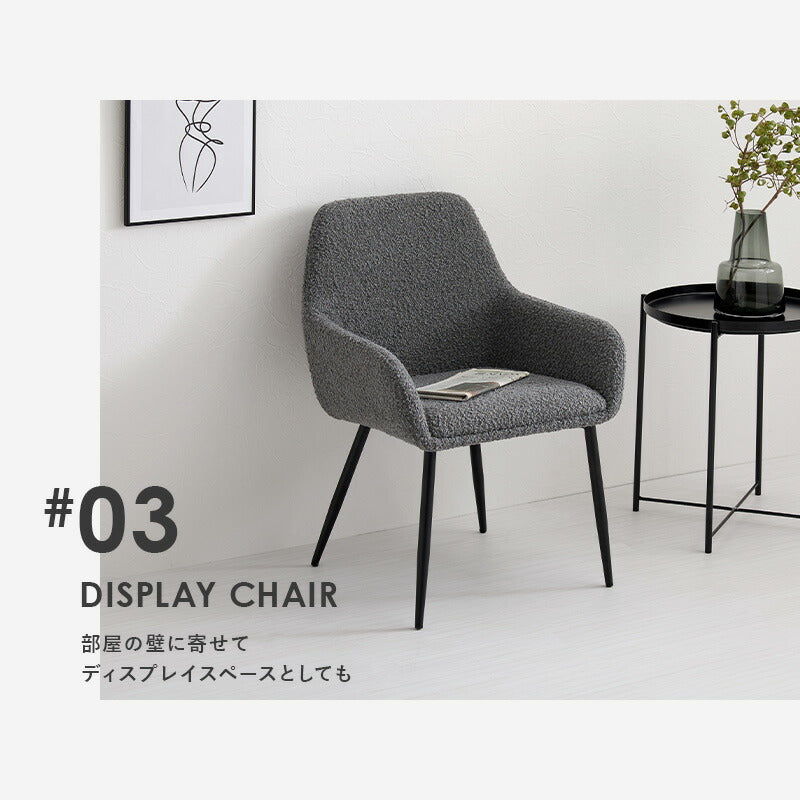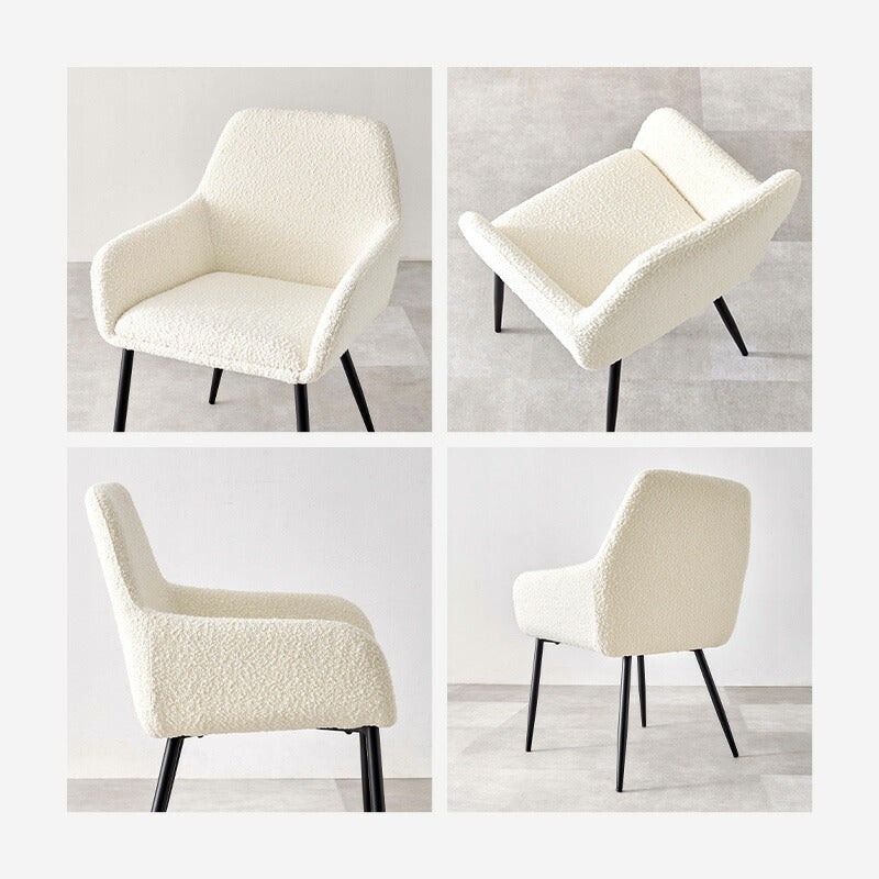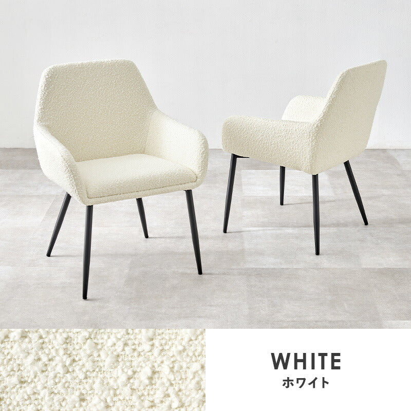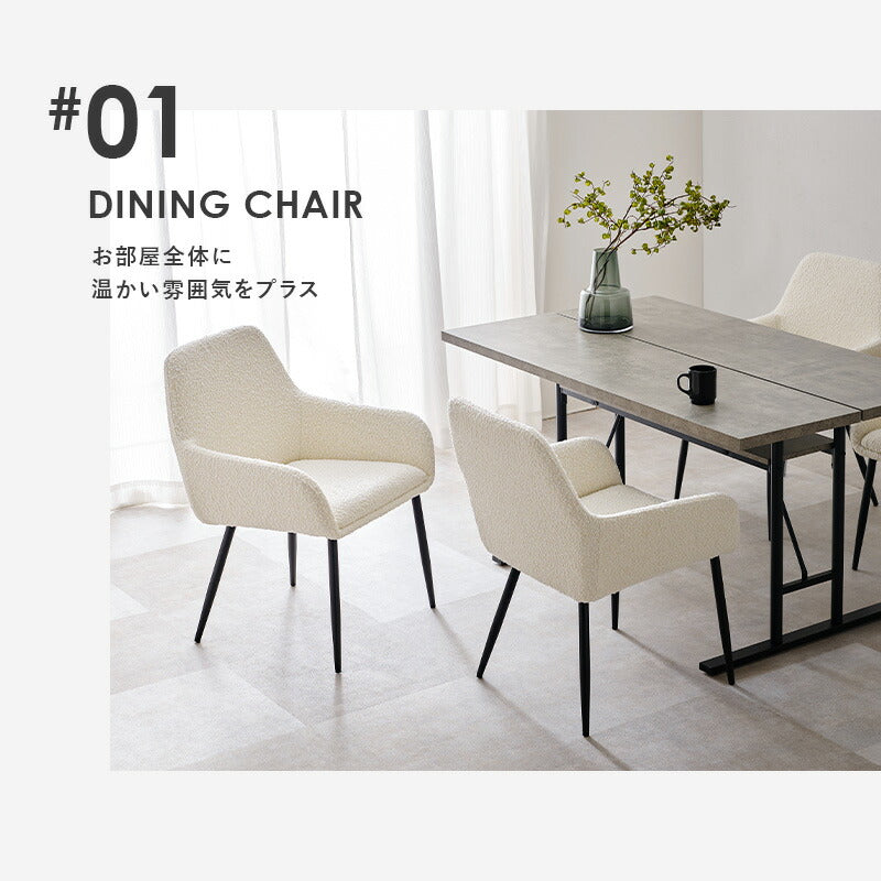 ぽこぽことした質感が特徴的なブークレ生地のダイニングチェア。細身のスチール脚と合わせてスッキリしつつも温かみのある空間を演出します。