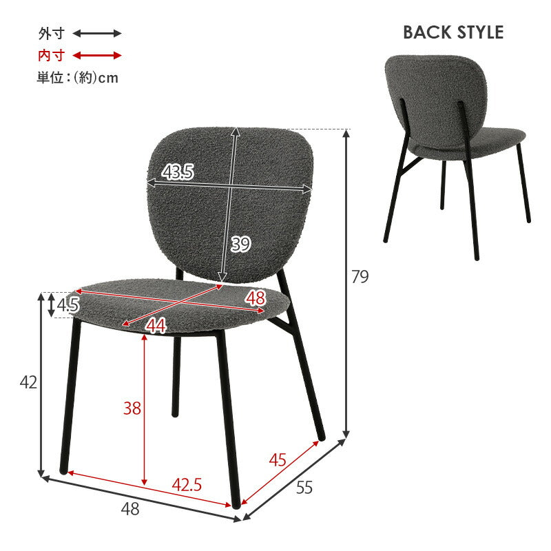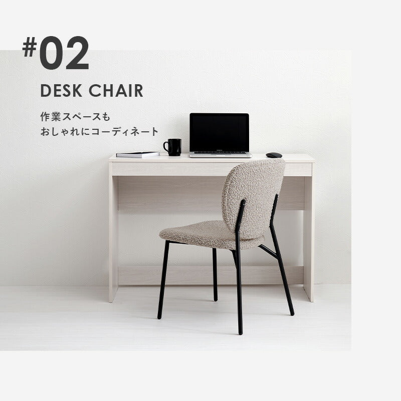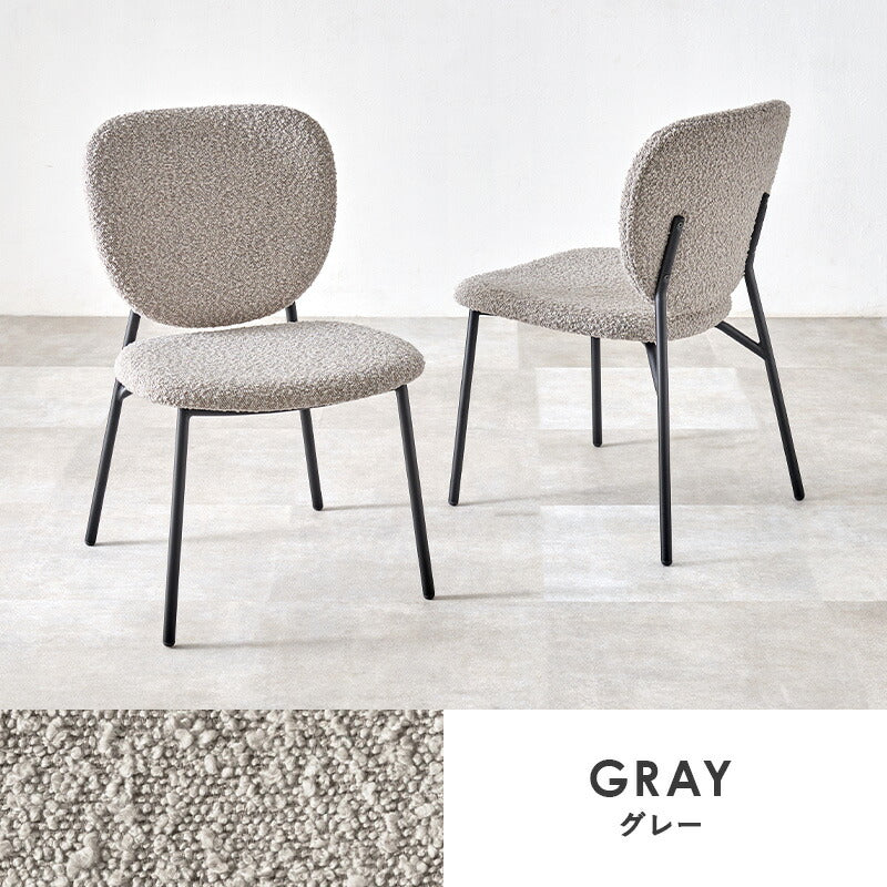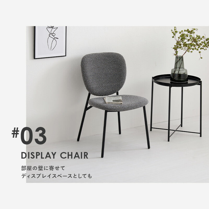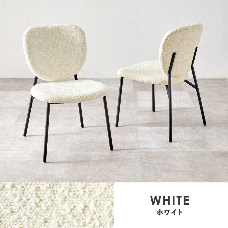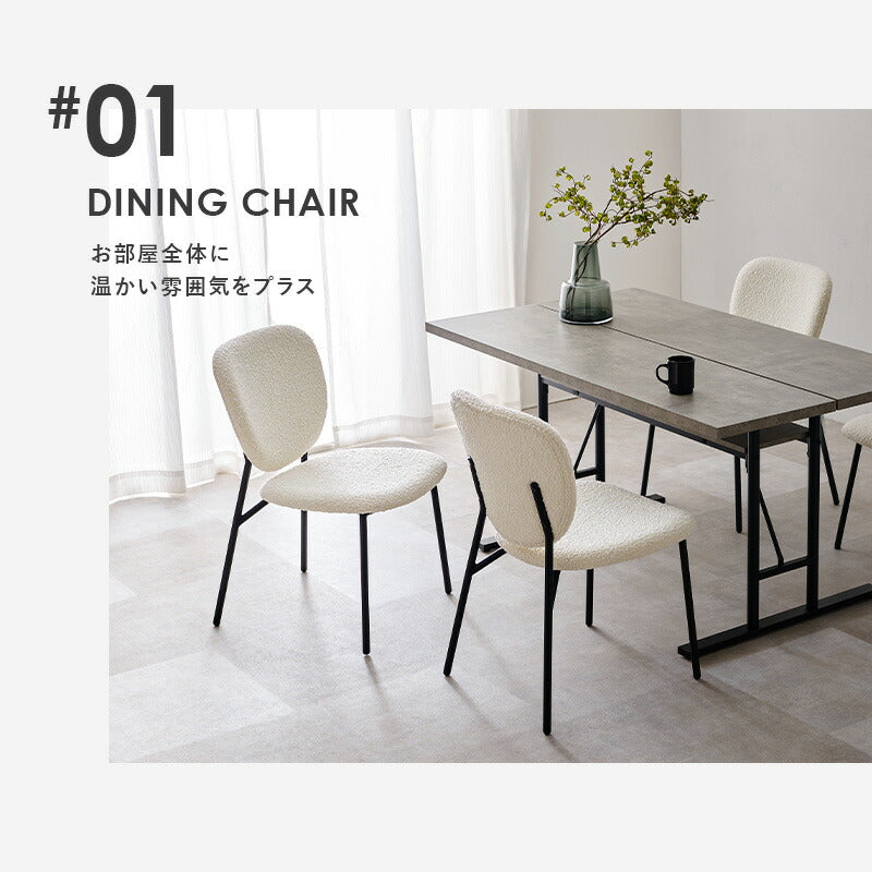 ぽこぽことした質感が特徴的なブークレ生地のダイニングチェア。細身のスチール脚と合わせてスッキリしつつも温かみのある空間を演出します。