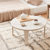 円形の天板にスタイリッシュな脚を組み合わせた、可愛いデザインのローテーブル。