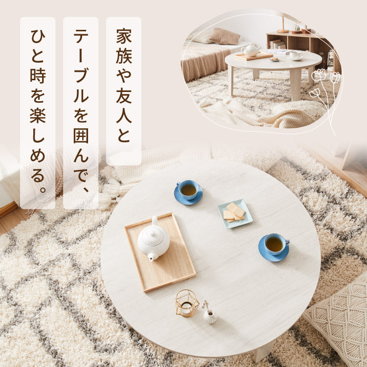 折りたたみテーブル 円形 88cm 折れ脚 テーブル ローテーブル センターテーブル 丸型 木目 ヴィンテージ調 ホワイト 白 ナチュラル 可愛い かわいい リビングテーブル 机 デスク 北欧 おしゃれ(代引不可)