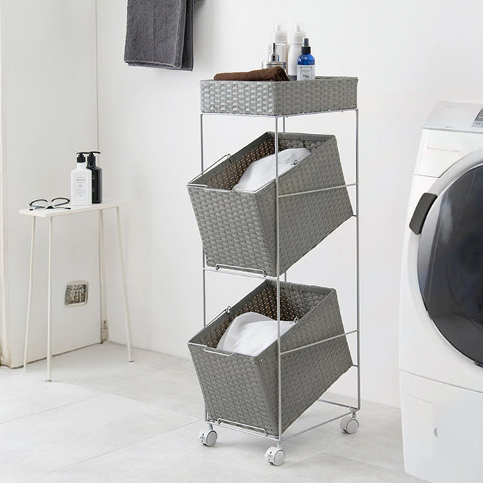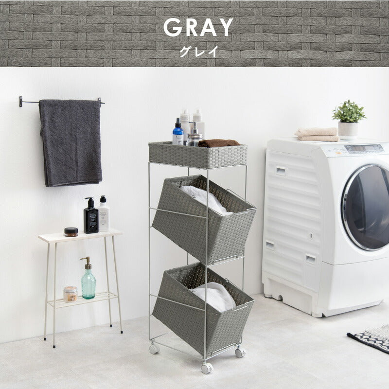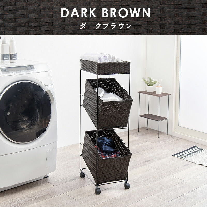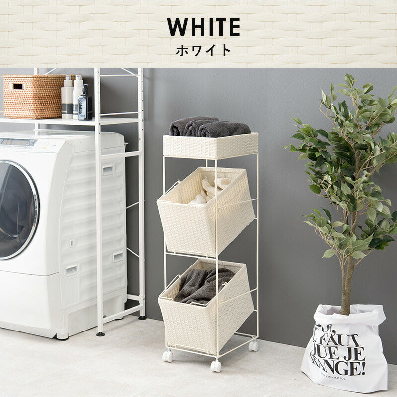 ランドリーラック 2杯 引き出し 幅28cmラタン調 完成品 収納 かご カゴ 籠 棚 すき間収納 スリム ランドリーバスケット キャスター ランドリーチェスト 洗面所 サニタリー 脱衣所(代引不可)