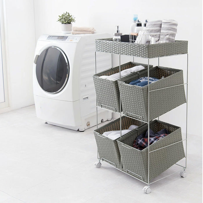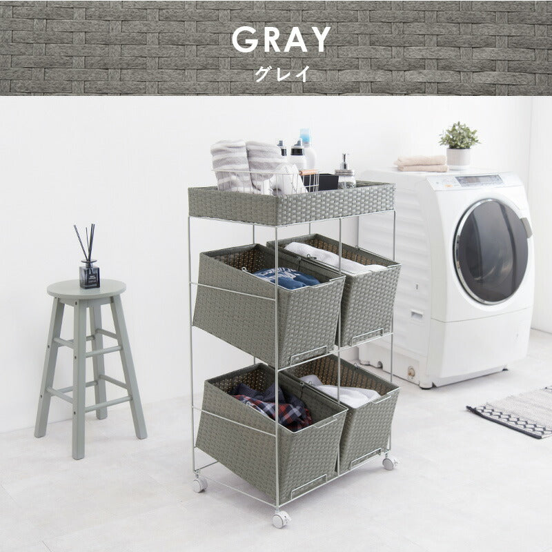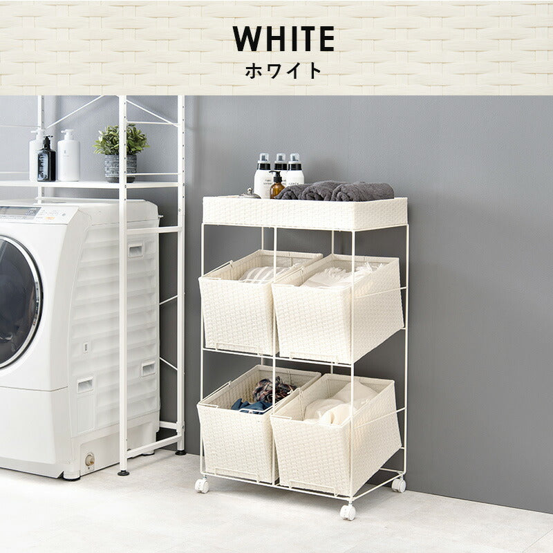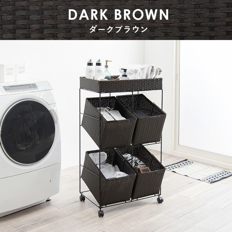 ランドリーラック 4杯 引き出し 幅56cmラタン調 完成品 収納 かご カゴ 籠 棚 すき間収納 スリム ランドリーバスケット キャスター ランドリーチェスト 洗面所 サニタリー 脱衣所(代引不可)