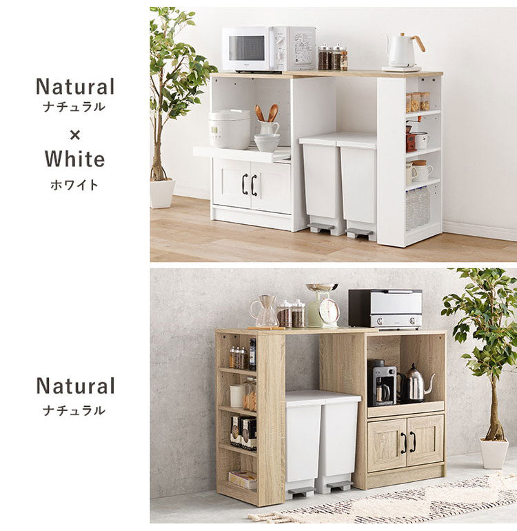 カントリー調 伸縮キッチンカウンター 2点セット 幅73.5~121.5 スライド棚 2口コンセント 扉収納 食器棚 可愛い かわいい 北欧 おしゃれ アンティーク調 棚 ラック ごみ箱上ラック ゴミ箱上ラック(代引不可)