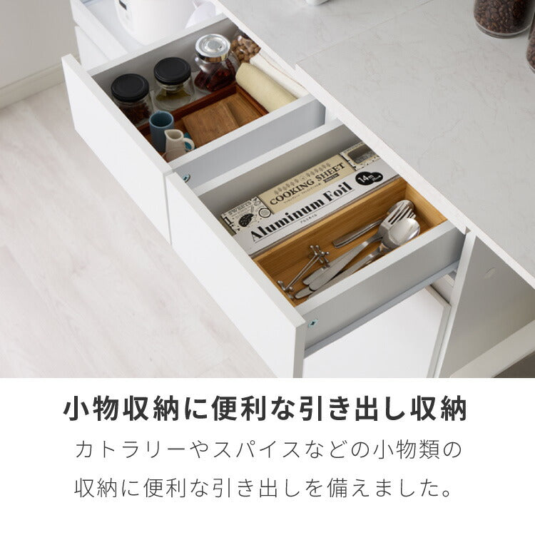 大理石調、モノトーン、白、ホワイト、キッチンカウンター、伸縮式、伸長式、食器棚、収納、ゴミ箱上ラック、ゴミ箱ラック、ごみ箱上ラック、ごみ箱ラック、キッチンラック