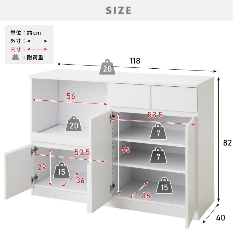2口コンセント付きでキッチン家電の収納に便利です。