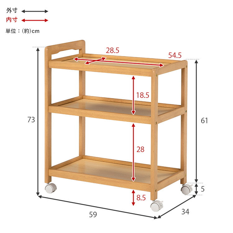 キッチンワゴン 天然木 キャスター付き キッチンラック キッチン収納 ワゴン 棚 ラック サブテーブル キッチン おしゃれ 北欧 収納 3段(代引不可)