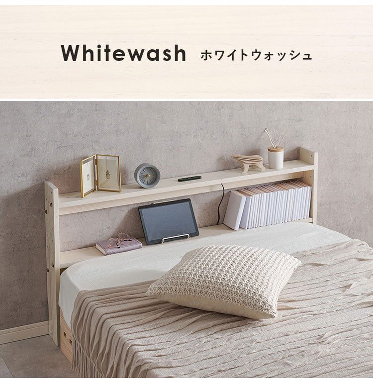 ベッドと壁の隙間に挟んで置くだけで枕元スッキリ収納。棚板の高さが変えられ、コンセント付きなので便利。セミダブルサイズ対応、幅120cm