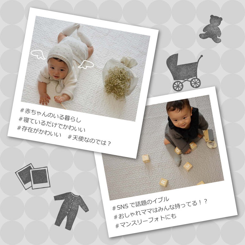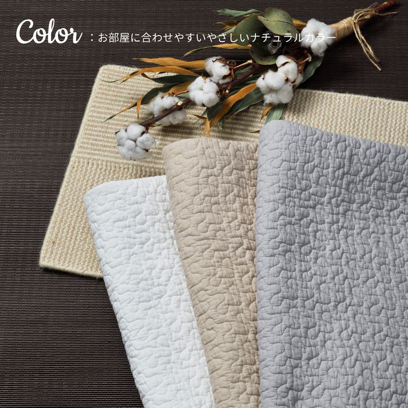 かわいいキルティングにナチュラルなカラーでいろんなお部屋に合わせやすいです。5サイズ展開でベビーマットからラグまで使い方はさまざま!