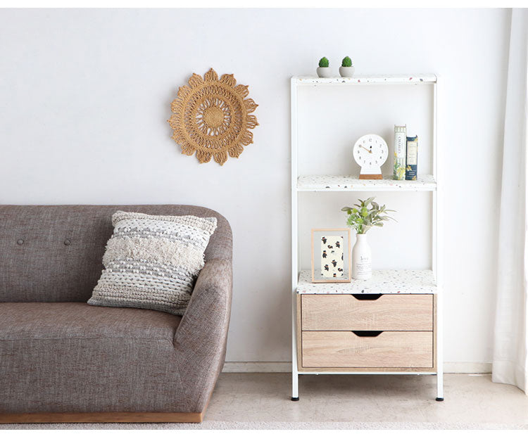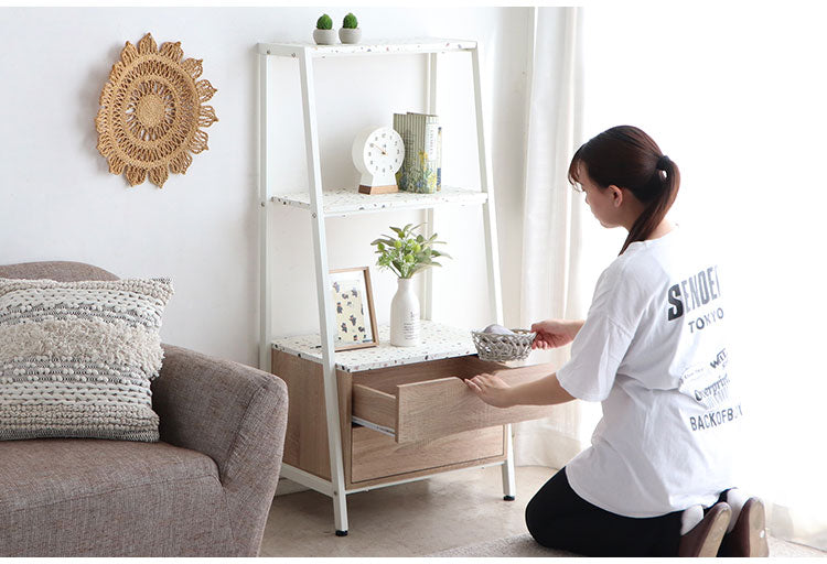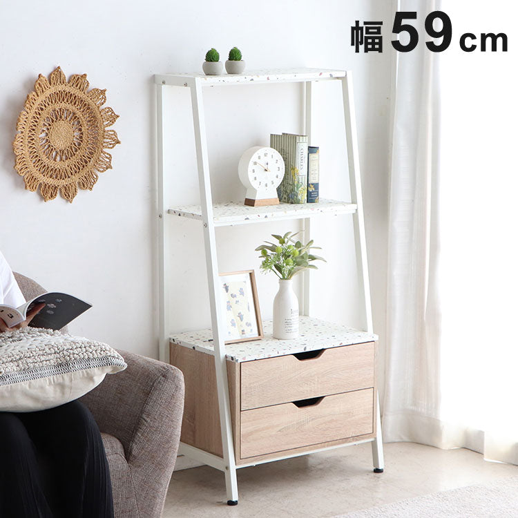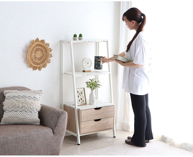 シェルフ 幅59 奥行41 高さ126cm オープンラック テラゾー柄 引き出し収納 ディスプレイラック 本棚 リビング おしゃれ 韓国インテリア 韓国 北欧 一人暮らし 新生活 大人(代引不可)