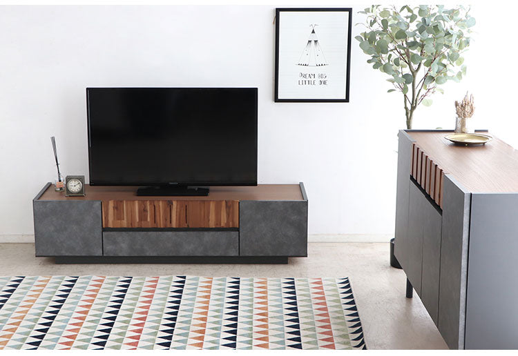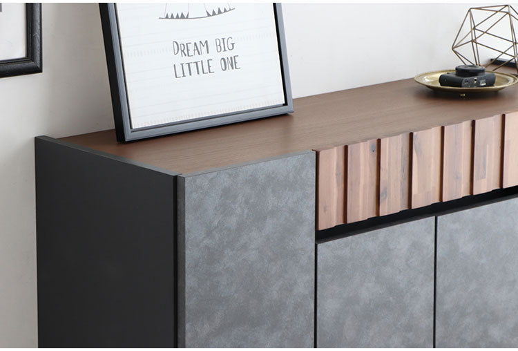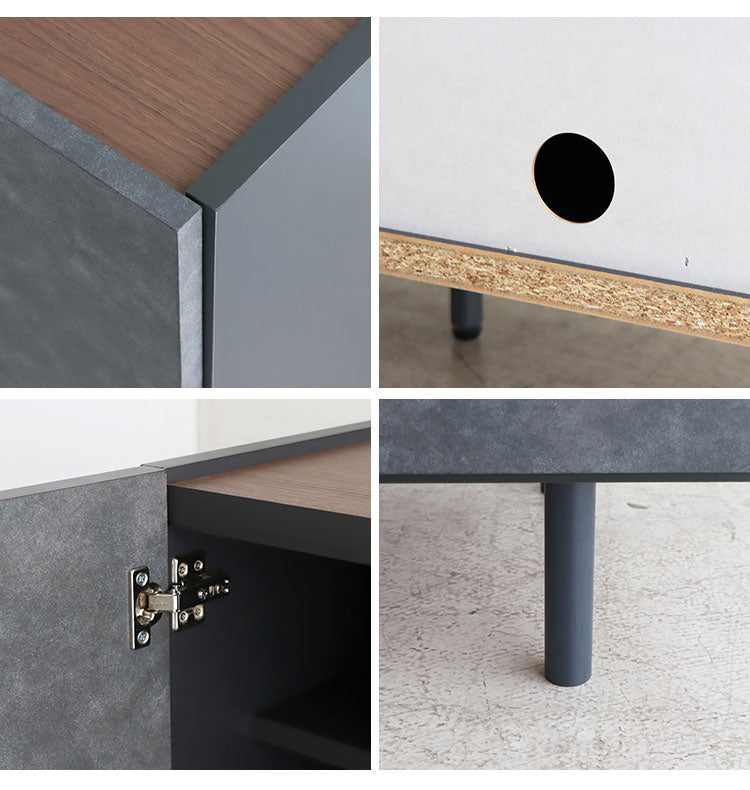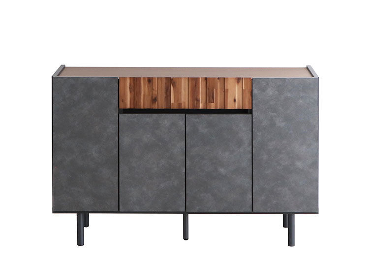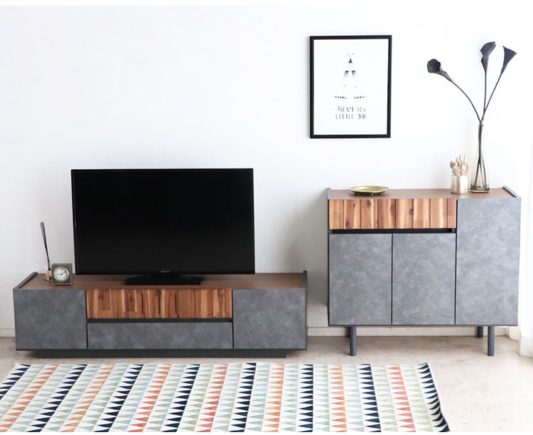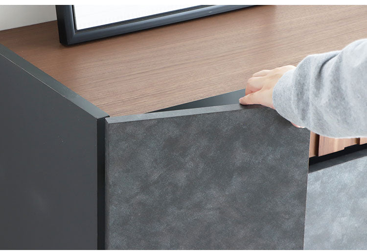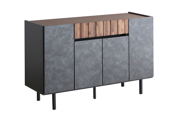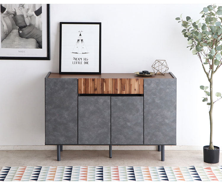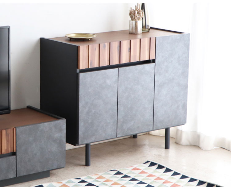 アカシア材の凹凸やコンクリ調の前板のリアルな質感が魅力のキャビネット。