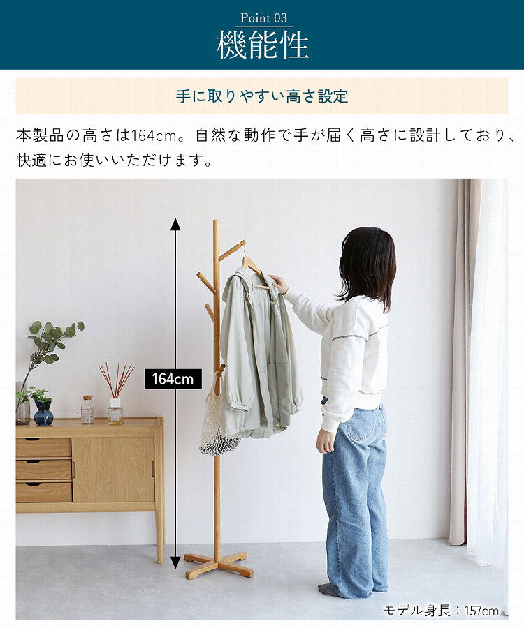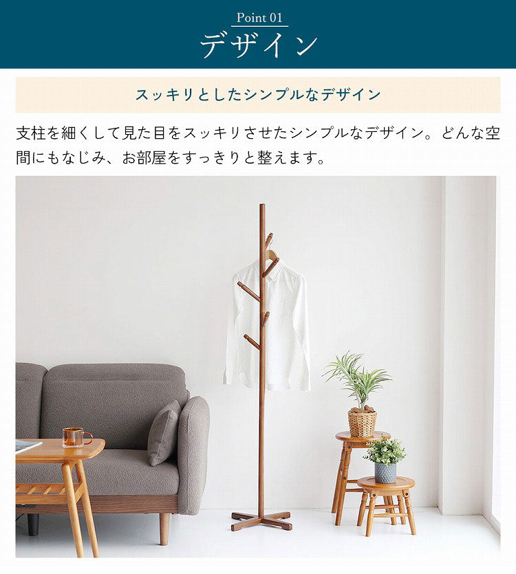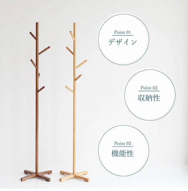 ポールハンガー 幅42 奥行42 高さ164 ハンガースタンド コート掛け 衣類収納 帽子掛け バッグ掛け スリム収納 玄関収納 シンプル家具 木製ハンガー(代引不可)