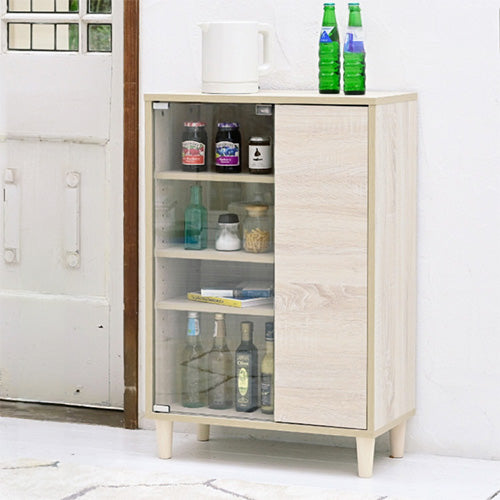 ガラス&扉キャビネット。6つのデザインと5つのカラーからお選びいただける6デザインキャビネット”Adatto”。ガラス扉部分にはディスプレイ、引出しには見せたくないものを収納。