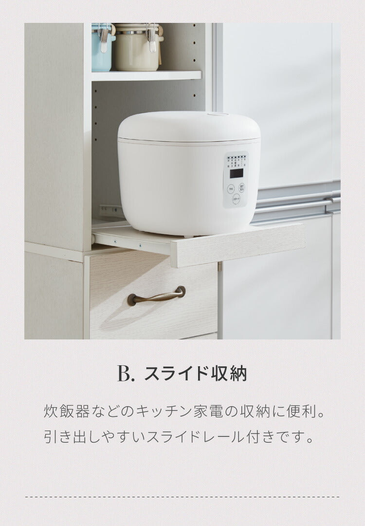 ・オープン部分はスライドレールを採用。炊飯器などの家電などを置き、使いたいときに取り出して使用することが可能です。