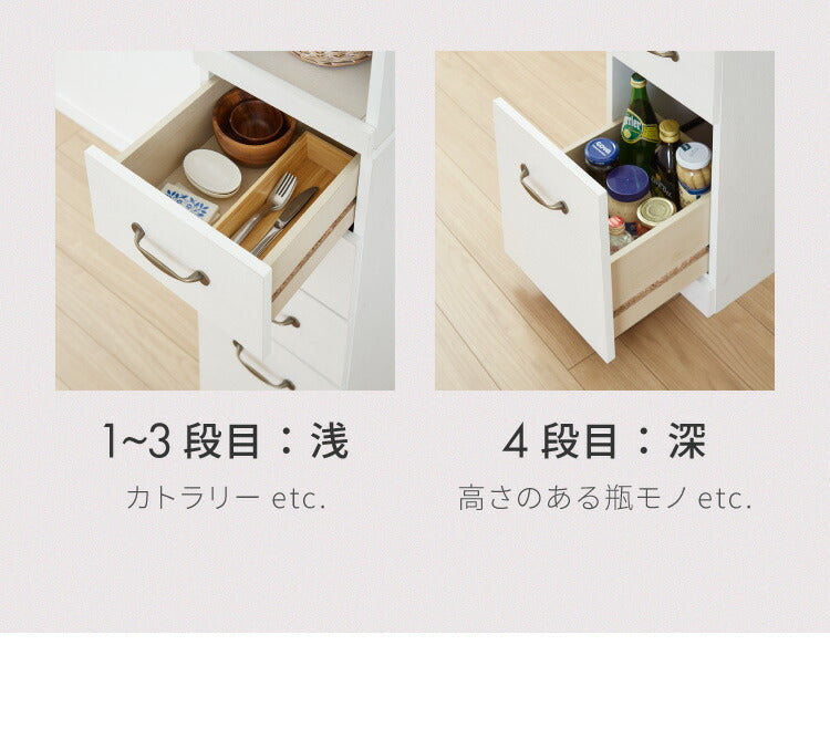 ・下段は引き出し収納となっており、カラトリーやお箸などキッチン小物を収納できます。
