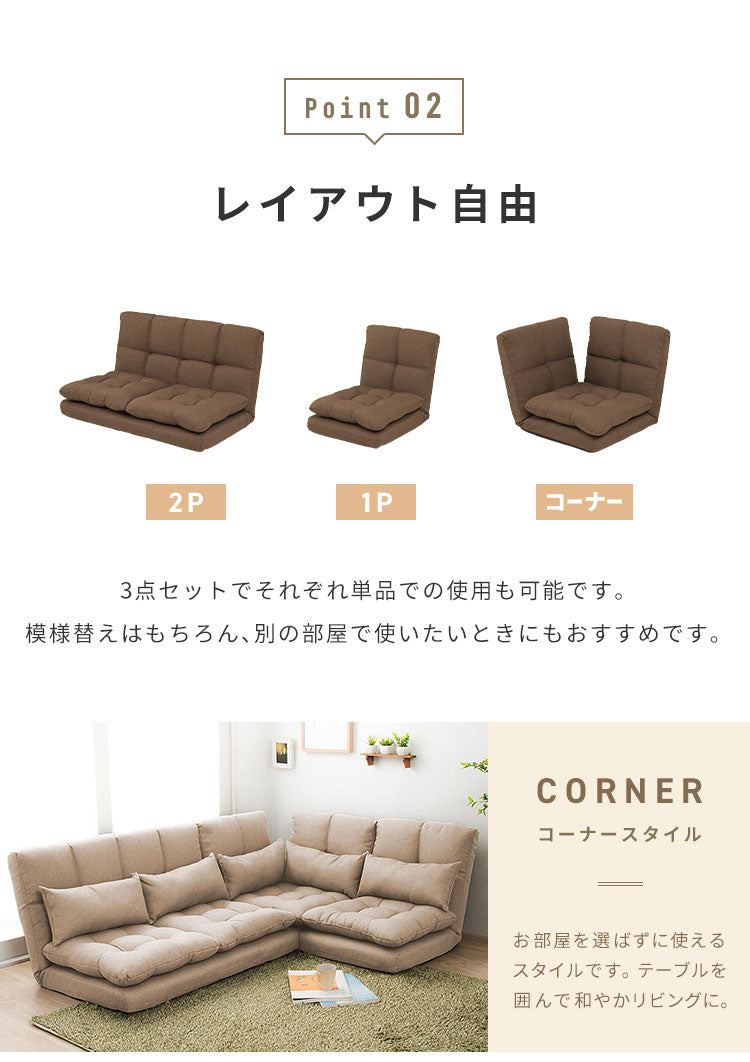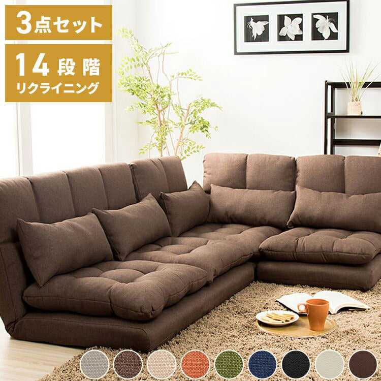 ソファ ふっくらコーナーソファ3点セット 14段階 リクライニング 2人掛け 3人掛け 北欧 おしゃれ ファブリック レザー ソファ リクライニングソファ ローソファ コーナーソファ コーナー ロータイプ フロアーソファ