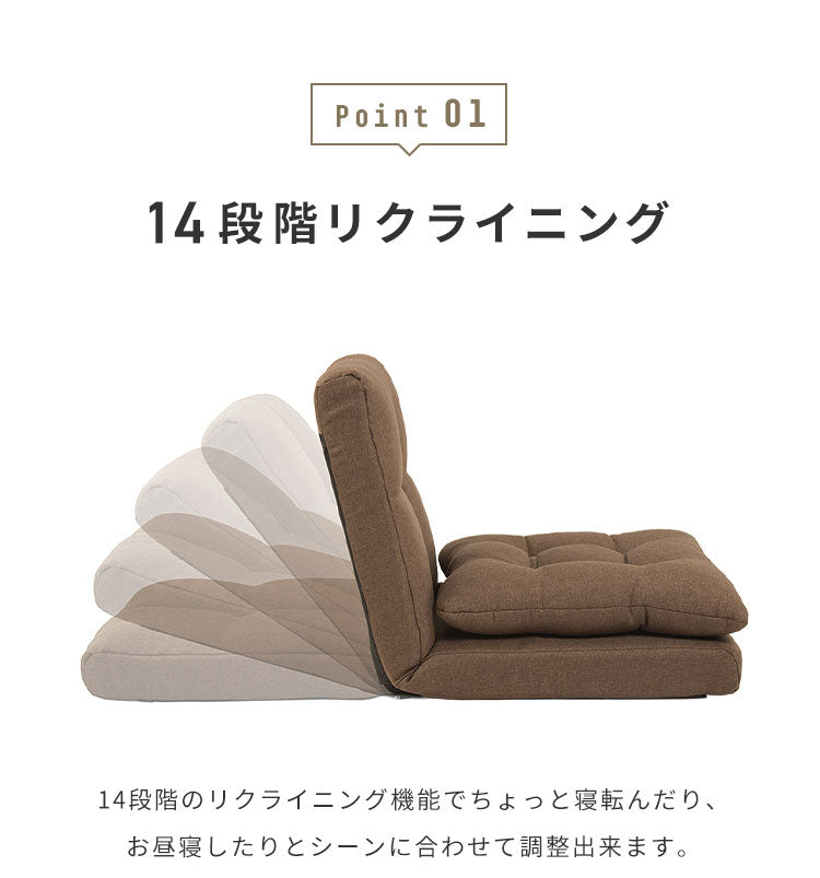 ・14段階のリクライニングと3点セットのセパレートタイプでシーンに合わせて使えます