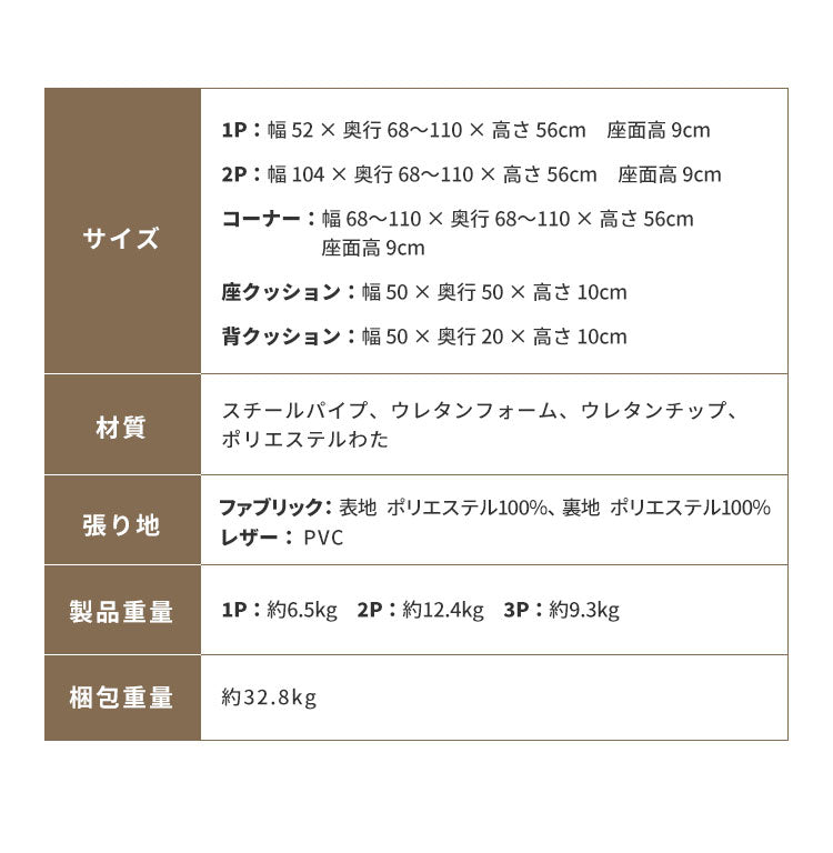コーナー:(W)68?110×(D)68?110×(H)56cm(SH)9cm