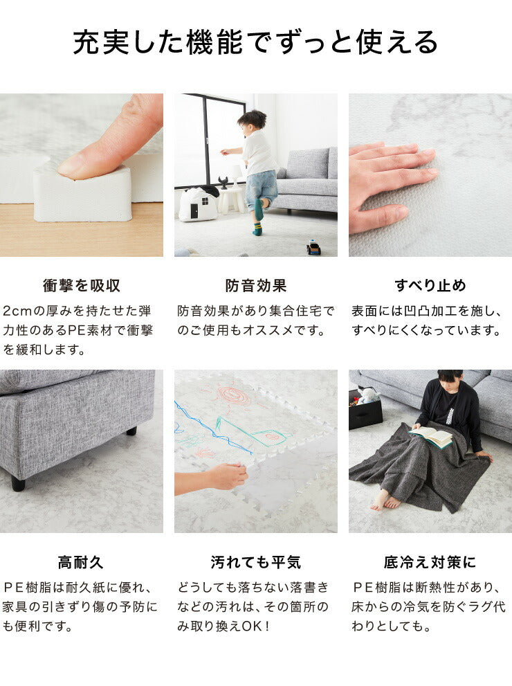 ジョイントマット 大理石柄 大判 60cm 16枚 PE樹脂 低ホルムアルデヒド 3畳相当 16枚組 レイアウト自由 安心素材のカラフルプレイマット フロアマット ベビー 洗える 防音 断熱 保温 サイドパーツ付
