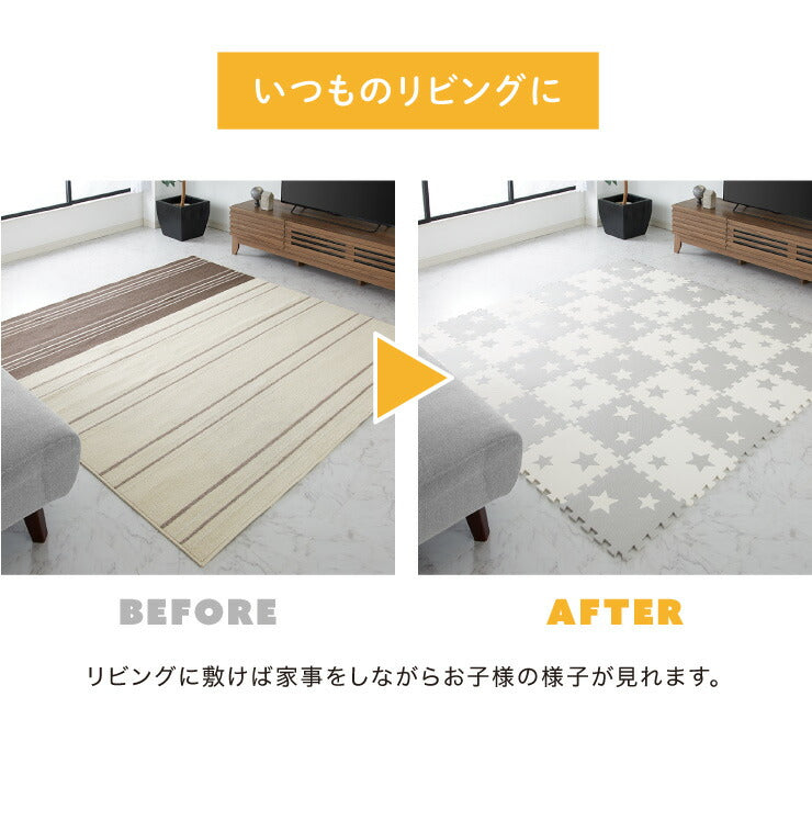 パズルマット 星柄 36枚組 32×32cm 抗菌防臭 ジョイントマット プレイマット フロアマット マット キッズラグ ラグ 子供 防音