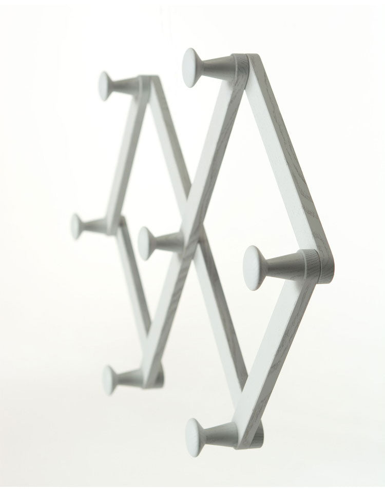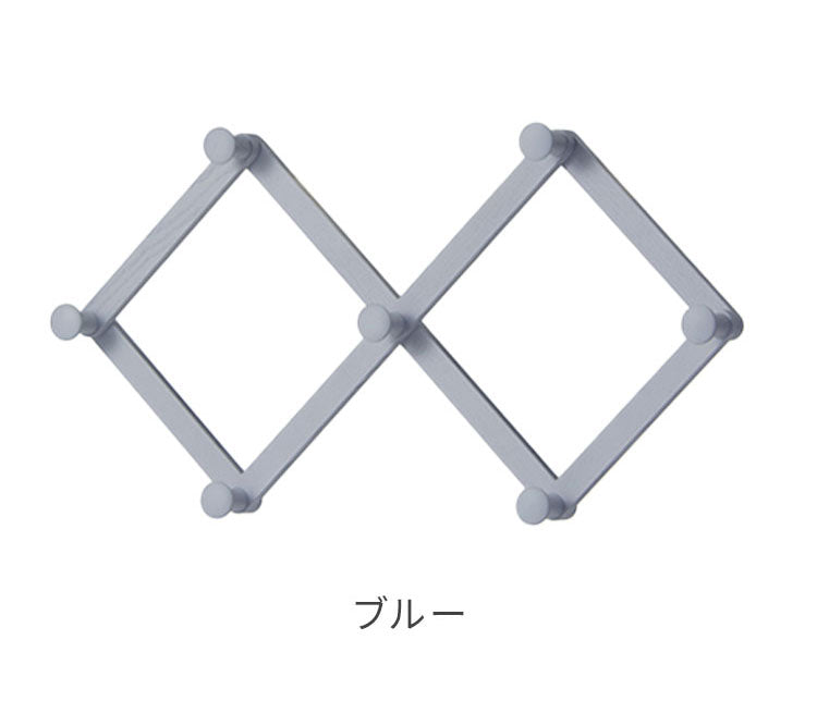 【日本製 アコーディオンフック 北海道産 タモ材】 エナメル塗装 フック 小物掛け 玄関 リビング 木製 木目調 木目 無垢材 旭川家具 幅75cm 奥行7.5cm 高さ39.5cm ライトグレー レッド ブルー(代引不可)