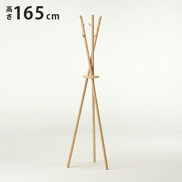 【日本製 コートスタンド 北海道産 タモ材】 スタンドハンガー 衣類掛け 衣服収納 フック 洋服掛け オイル仕上げ 木製 木目調 木目 無垢材 旭川家具 幅46cm 奥行41.5cm 高さ165cm ナチュラル(代引不可)
