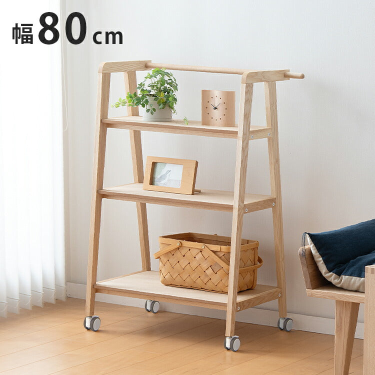 【日本製 ワゴンシェルフ 北海道産 タモ材】 オイル仕上げ ワゴン シェルフ 木製 木目調 木目 無垢材 旭川家具キャスター付き キャスター 台所収納 キッチン収 納幅80.5cm 奥行39.5cm 高さ100cm(代引不可)