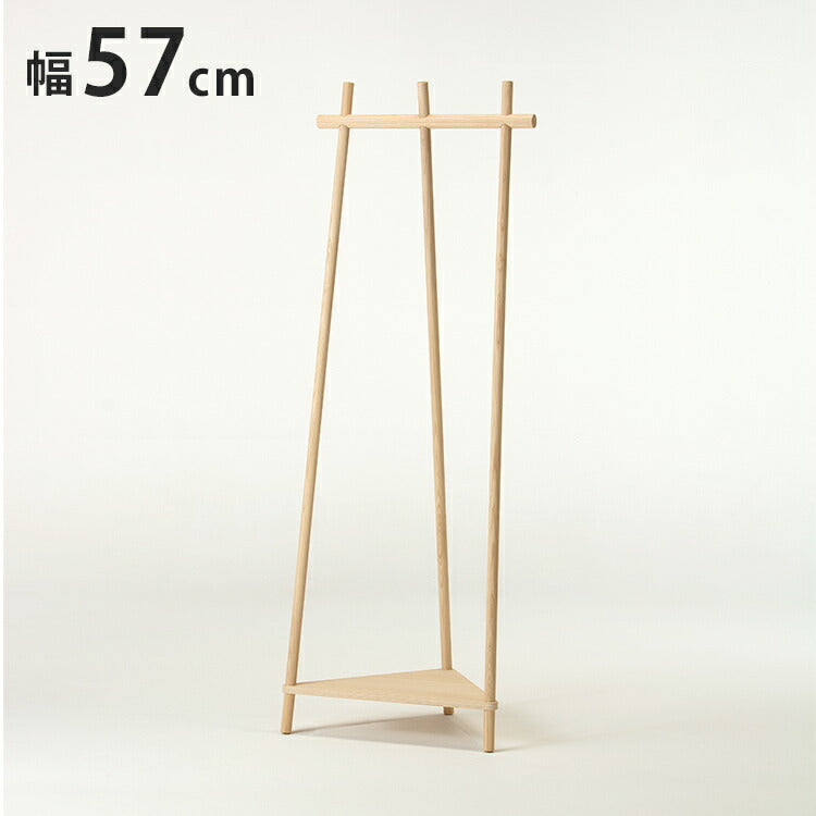 【日本製 コーナーラック 北海道産 タモ材】 オイル仕上げ 衣類掛け 衣服収納 ラック 小物置き 木製 木目調 木目 無垢材 旭川家具 幅57cm 奥行45cm 高さ160cm ナチュラル(代引不可)