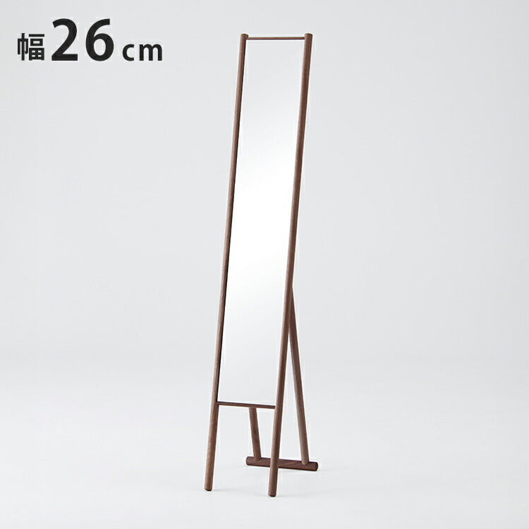 幅26.5cmのスリムな姿見。細身ながら全身を映すことができるので、出かける前にコーディネートを チェックするのにぴったりです。
