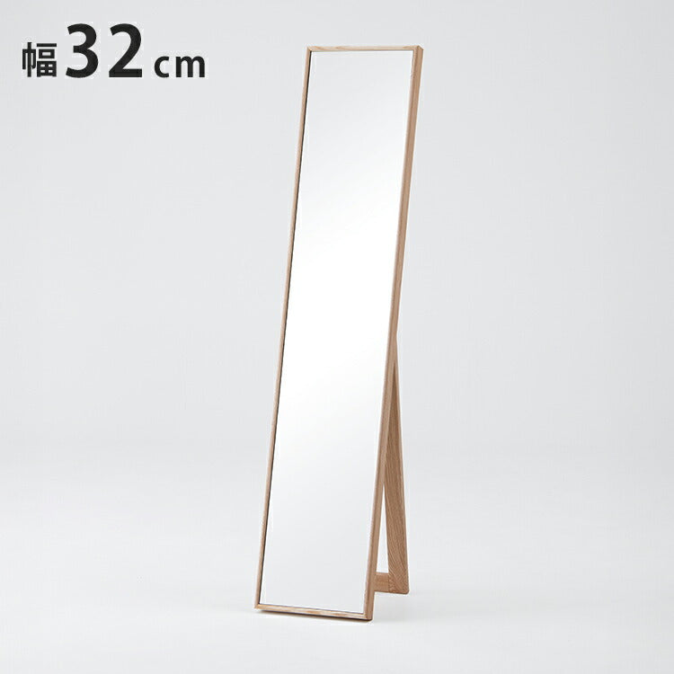 【日本製 フレームミラー 北海道産 タモ材】 タモ オイル仕上げ 旭川家具 スタンド スタンドミラー 全身鏡 鏡 姿見 壁掛け 全身 玄関用 リビング 無垢材 旭川家具 幅32cm 奥行4.5cm 高さ150cm(代引不可)