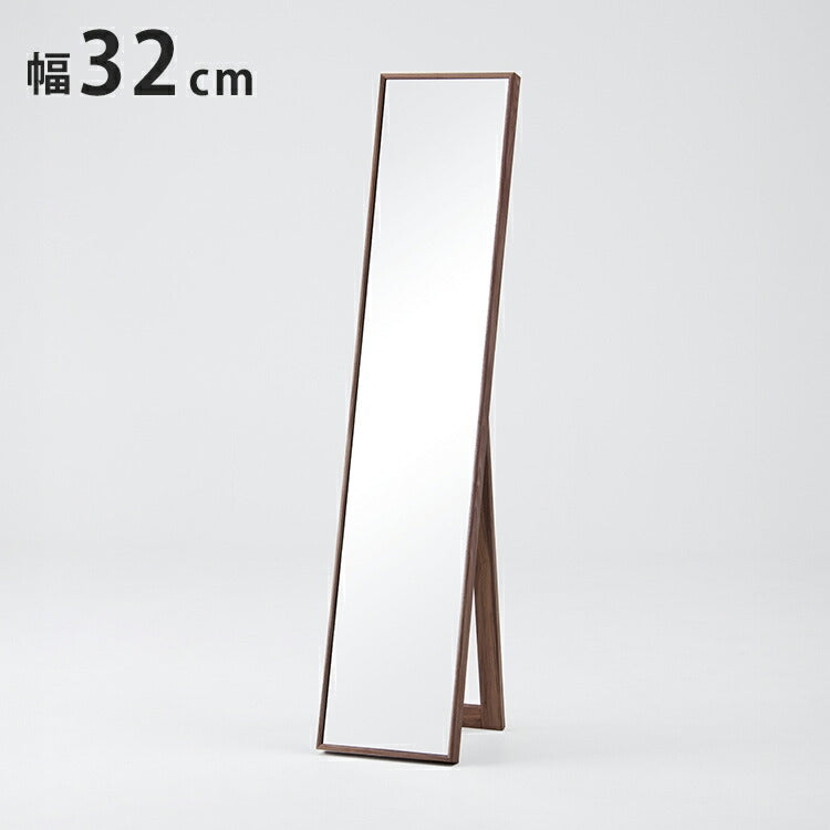 【日本製 フレームミラー ウォルナット材】 ウォールナット オイル仕上げ スタンド スタンドミラー 全身鏡 鏡 姿見 壁掛け 全身 玄関用 リビング 無垢材 旭川家具 幅32cm 奥行4.5cm 高さ150cm(代引不可)