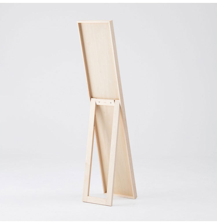 幅32cm、奥行42cm、高さ150cmのスリムなデザインで、床まである鏡面が全身を映し出します。日々の身だしなみチェックだけでなく、置くだけで空間に広がりと開放感をもたらしてくれるミラーです。