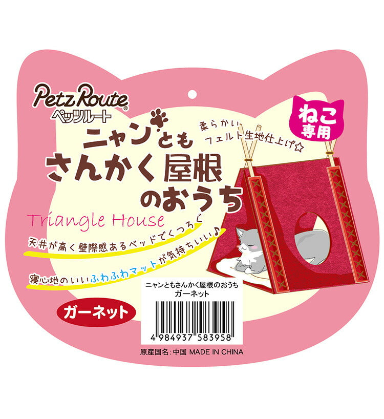 ペッツルート 猫用 ベッド ハウス ニャンともさんかく屋根のおうち クッション付 フェルト 猫用ハウス お家 ベッド ペットベッド 猫ベッド あったか 温か 暖か
