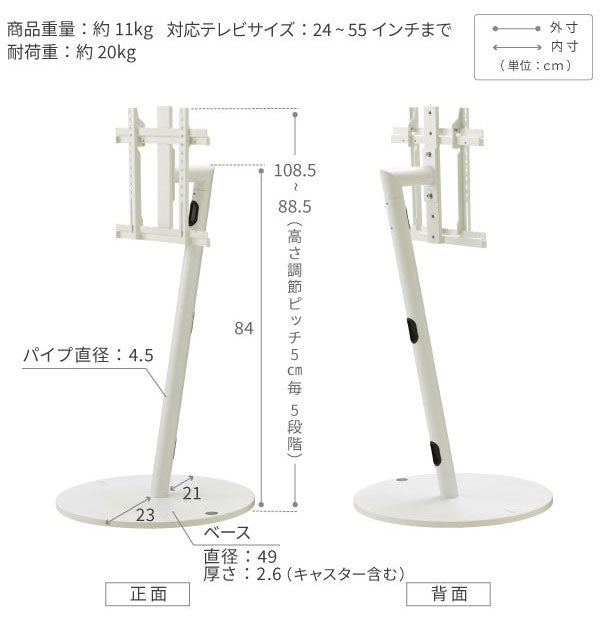 本体:幅49x奥行49x高さ88.5~108.5cm