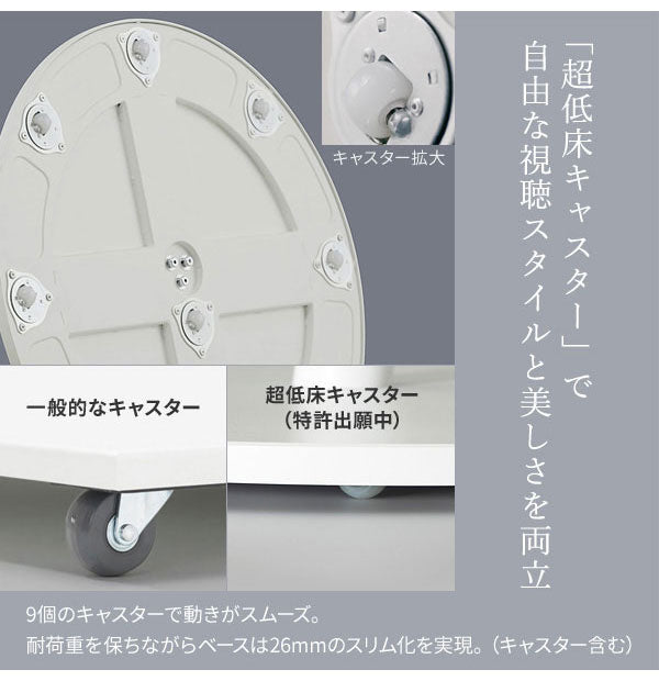 ベースサイズ:直径49cm、厚み2.6cm(キャスター含む)