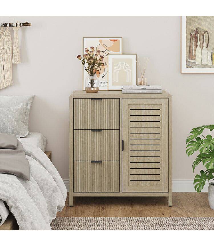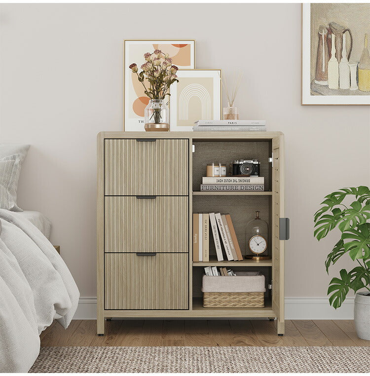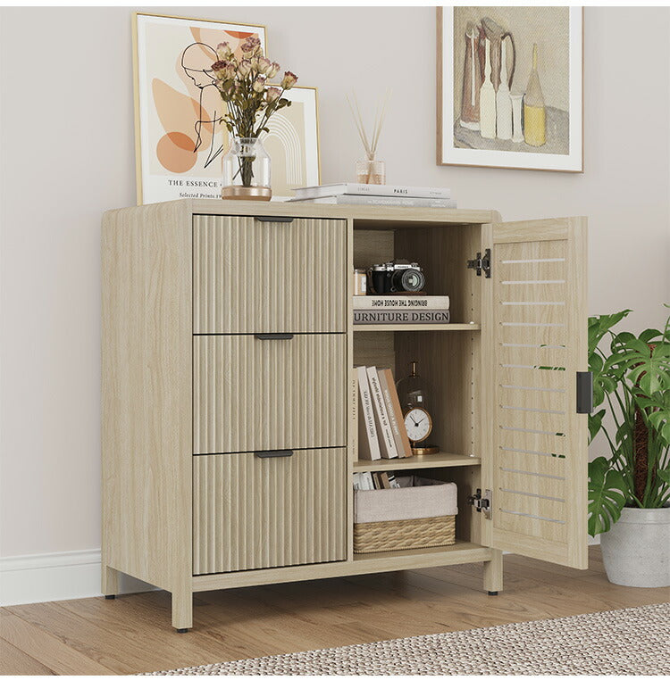 収納 キャビネット 棚 幅93cm サイドキャビネット チェスト カウンター 扉収納 棚収納 引き出し チェスト 3段 タンス 収納棚 韓国インテリア ラック シンプル ナチュラル かわいい おしゃれ 木目調 ROOMY(代引不可)
