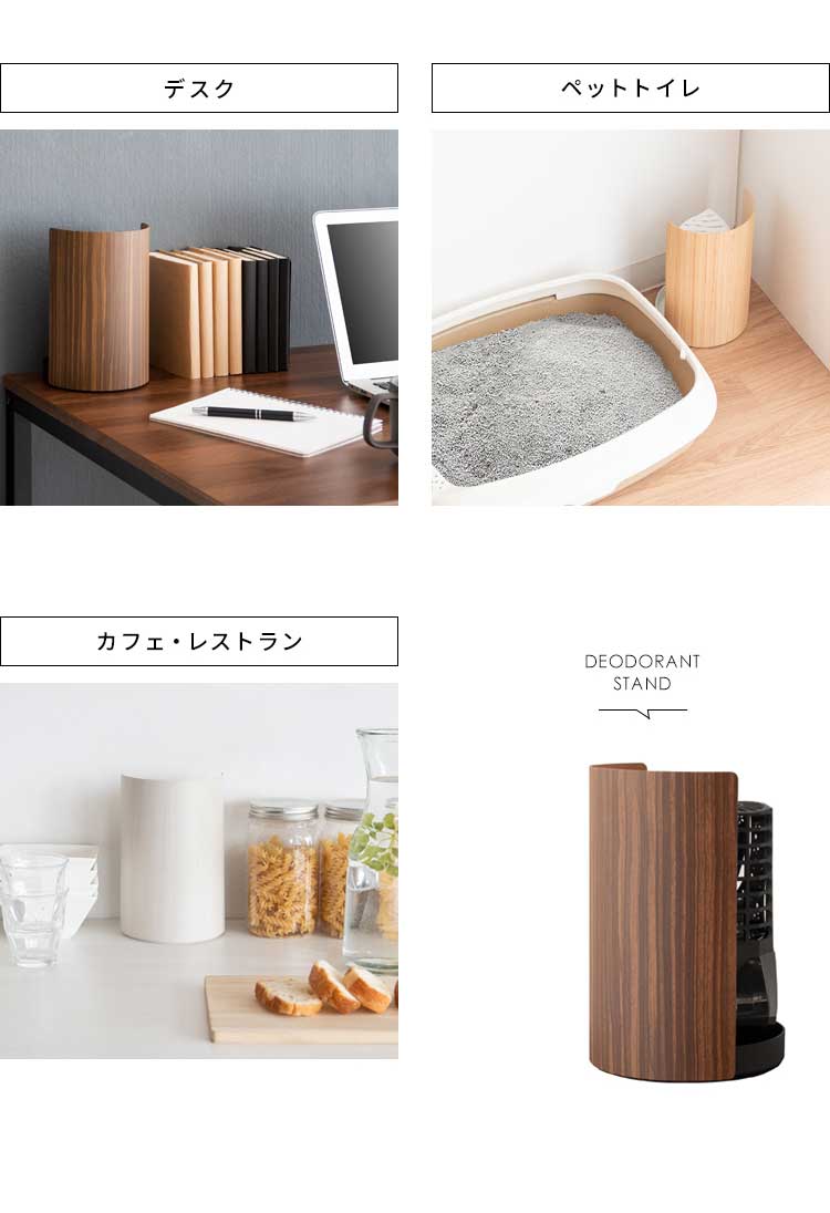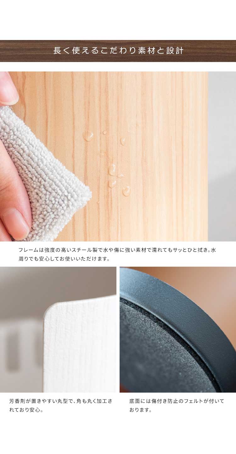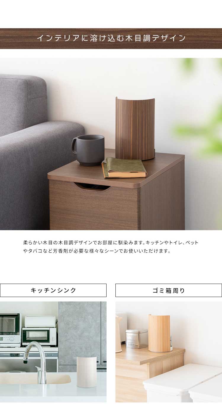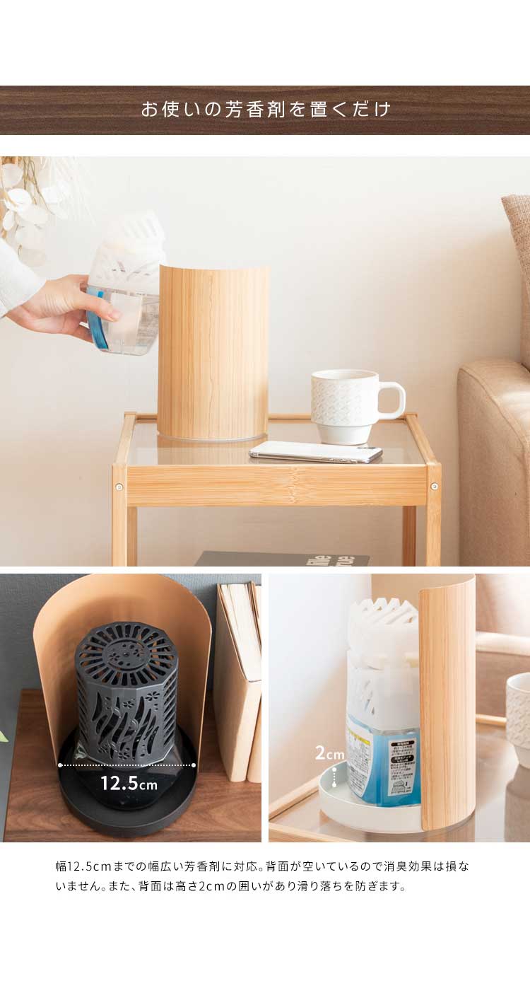 生活感が出がちな芳香剤や消臭剤を置いて隠すことができます。木目柄のデザインがお部屋の雰囲気を壊さず、インテリアに溶け込みます。