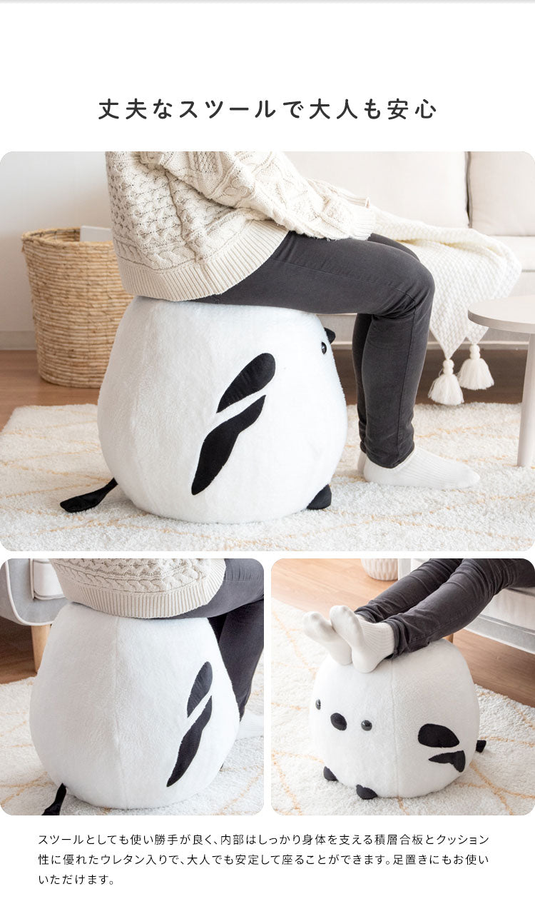白いふわふわの羽根と丸いフォルム、つぶらな瞳を再現した可愛いデザインに、大人も安定してお座りいただけるしっかりとした作りのスツールです。