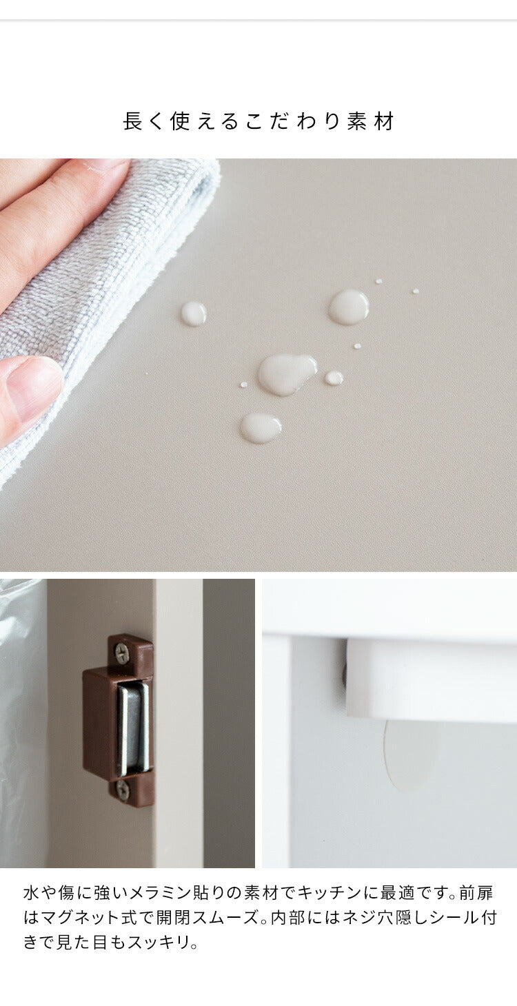 キッチンでお料理中でもゴミが捨てやすいプッシュ扉や、ゴミ袋の付け替えがしやすいリング式で使い勝手もバツグン。