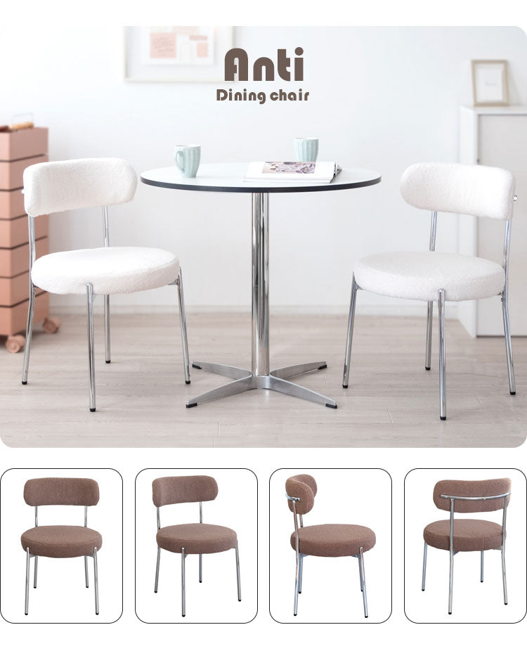 ダイニングチェア Anti アンティー ダイニング 椅子 ブークレ生地 ブークレ シルバーフレーム 韓国風インテリア ホテルライク かわいい おしゃれ(代引不可)