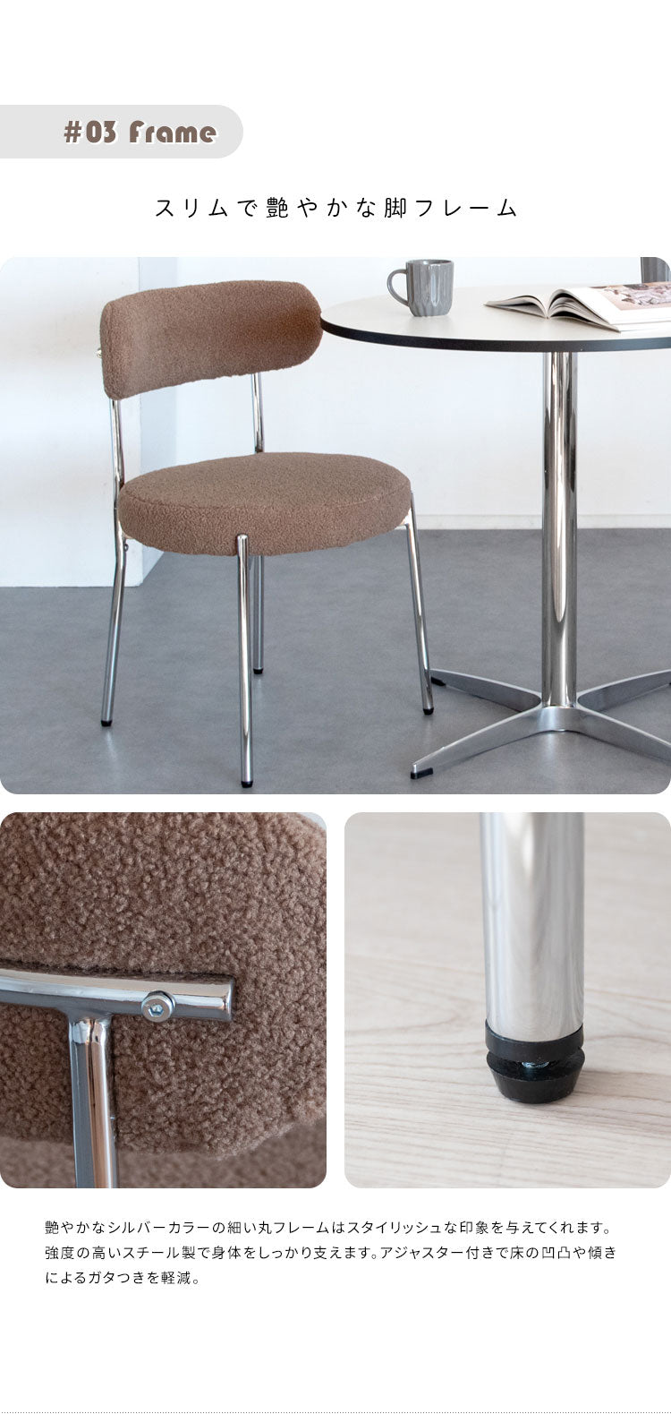 ふわもこなブークレ生地とシルバーフレームの丸くて可愛いダイニングチェア『Anti(アンティー)』。