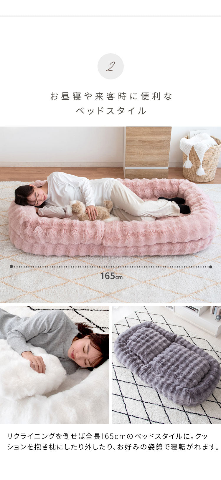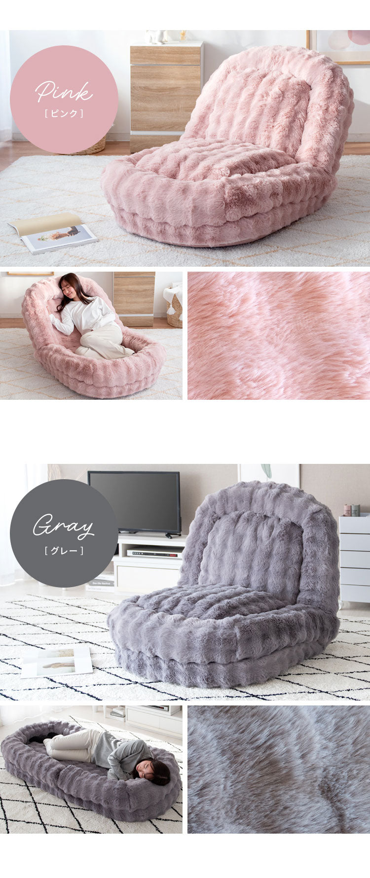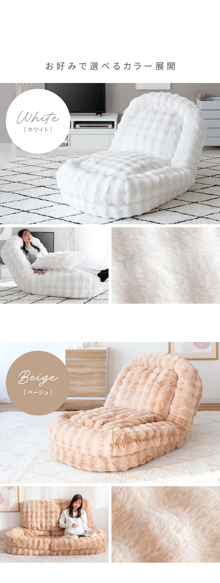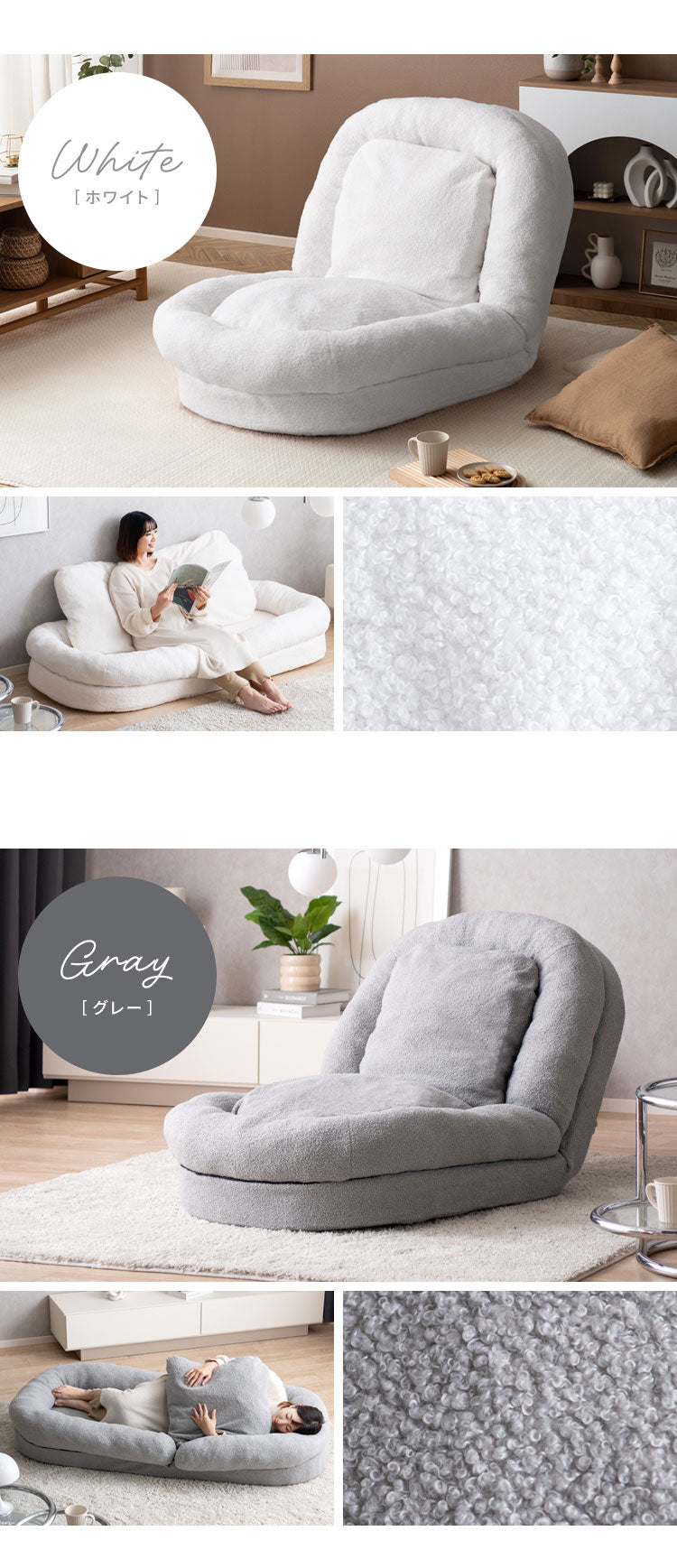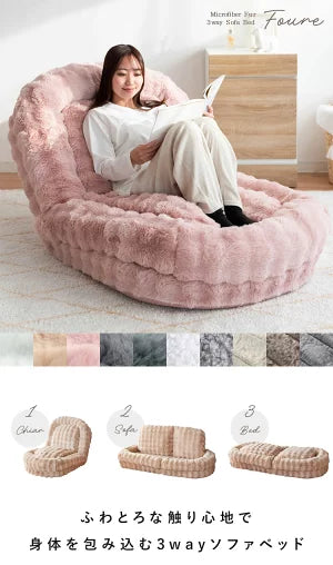 座椅子・ソファ・ベッドの3wayでお使いいただけて一日中過ごす巣ごもりふわとろソファベッド『Foure(フール)』。 とろけるようなやり方が気持ち良いマイクロファイバー生地とふかふかクッションがあなたを癒してくれます。 18段階フリーロックでお好みの角度に調整可能。