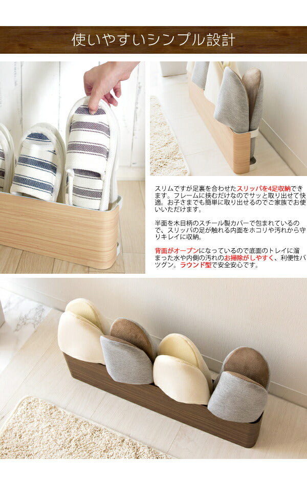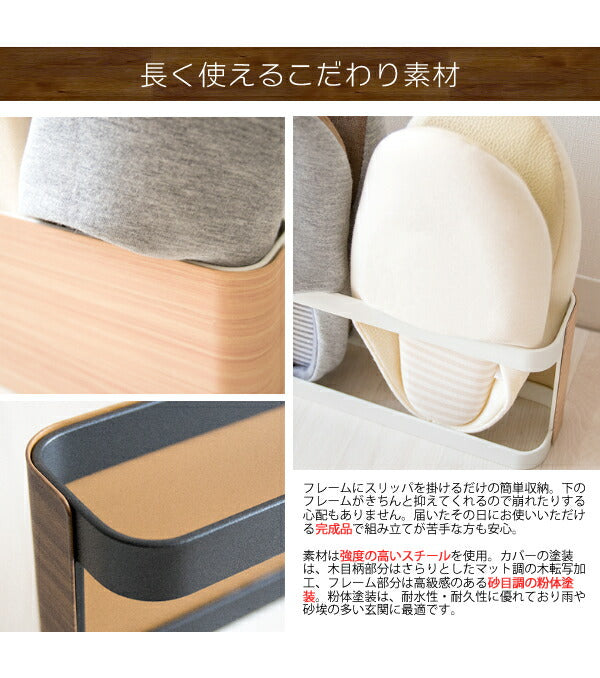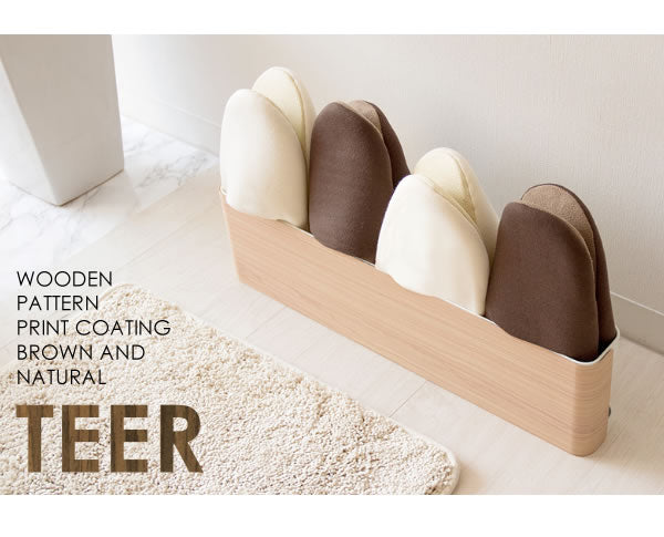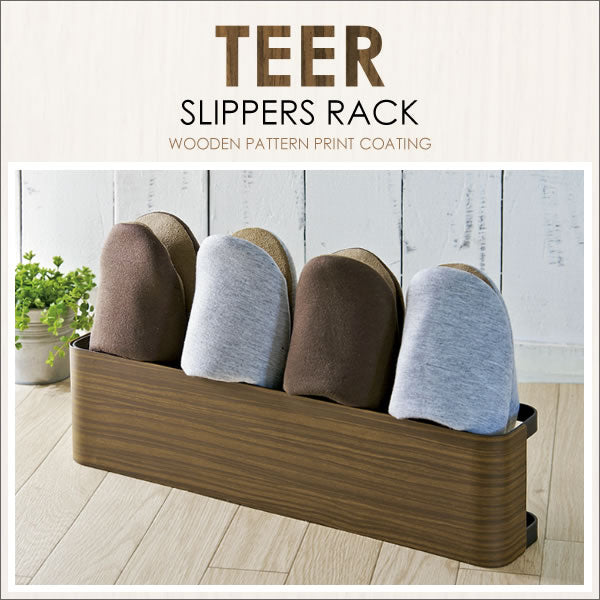 上品で繊細な木目柄が転写されたスチールデザイン『TEER(ティール)』シリーズのスリッパラック。使う人を選ばないシンプルなデザインです。