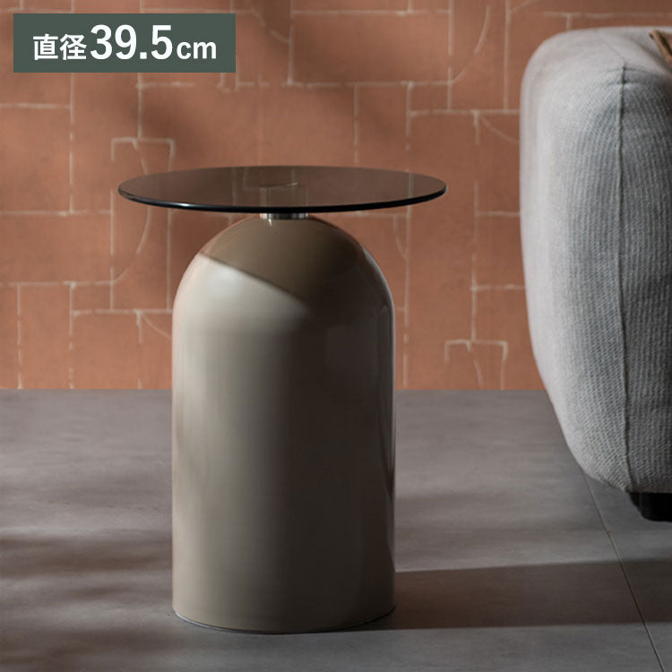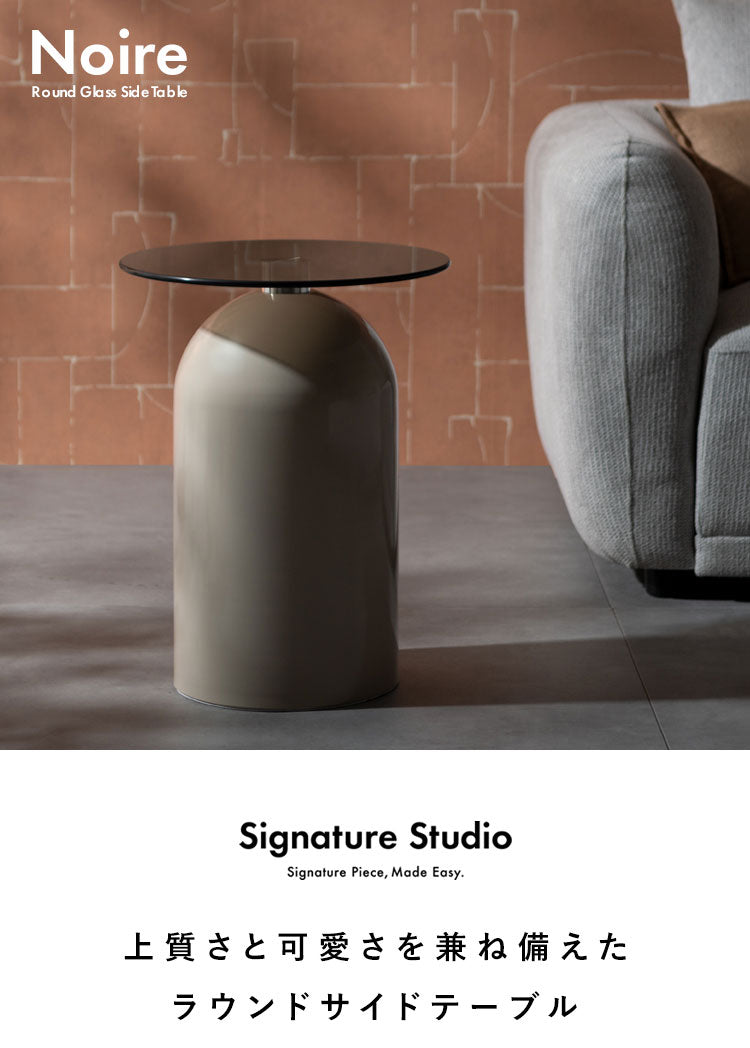 映り込みが美しいガラス天板とドーム型の円筒ベースが目を惹くサイドテーブル『Noire(ノワレ)』。