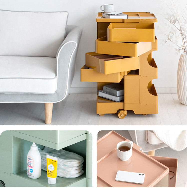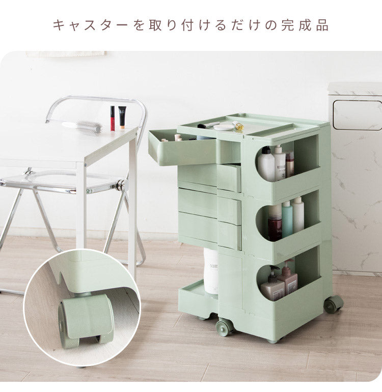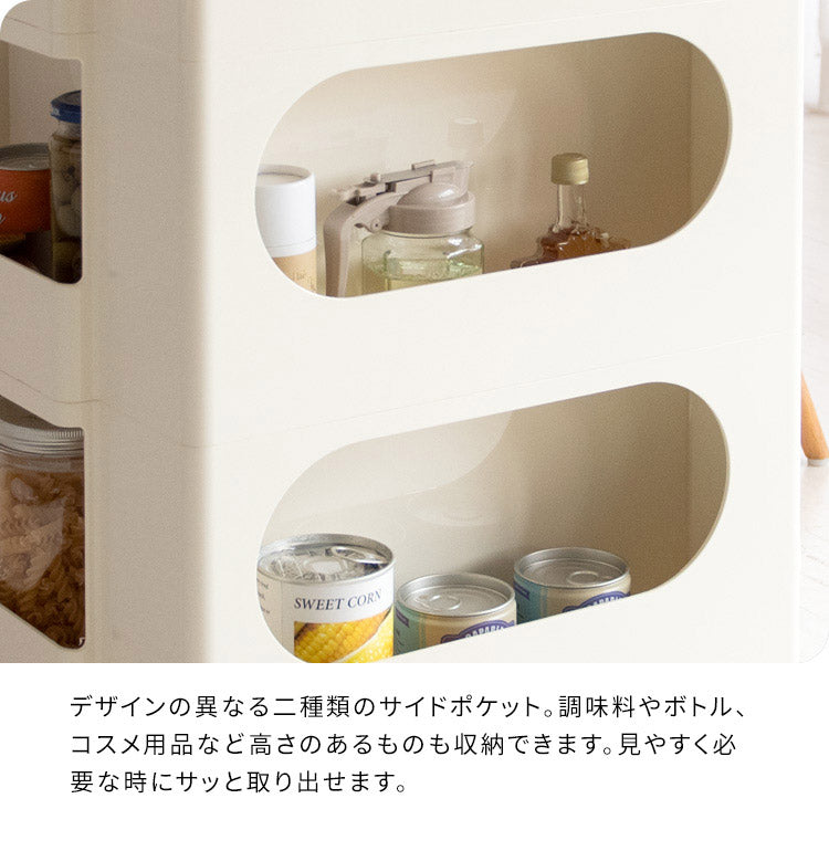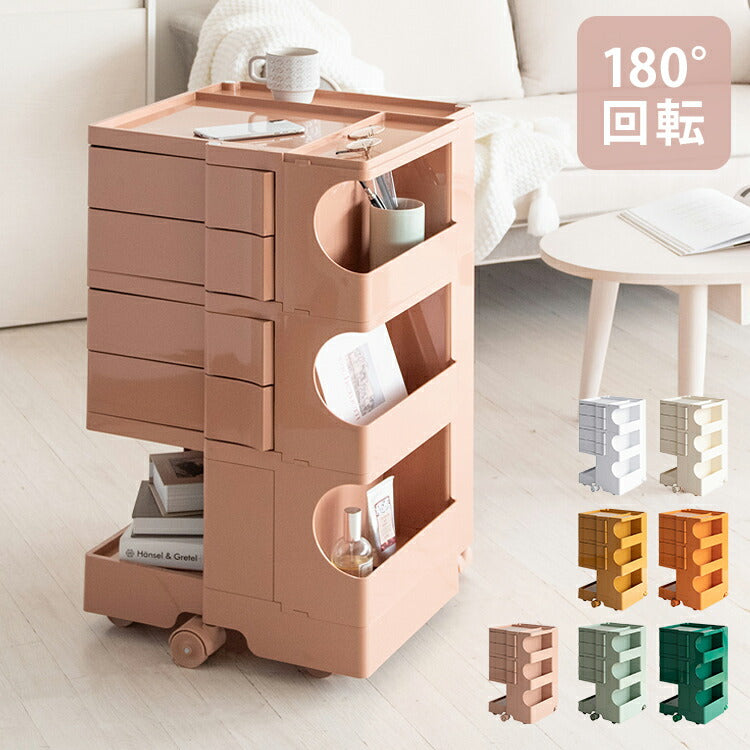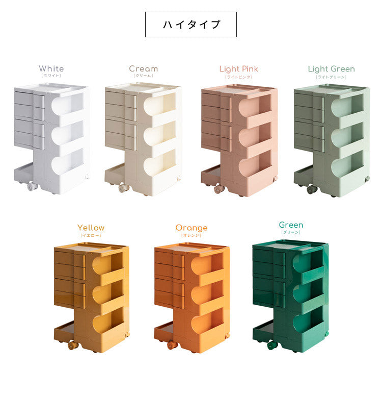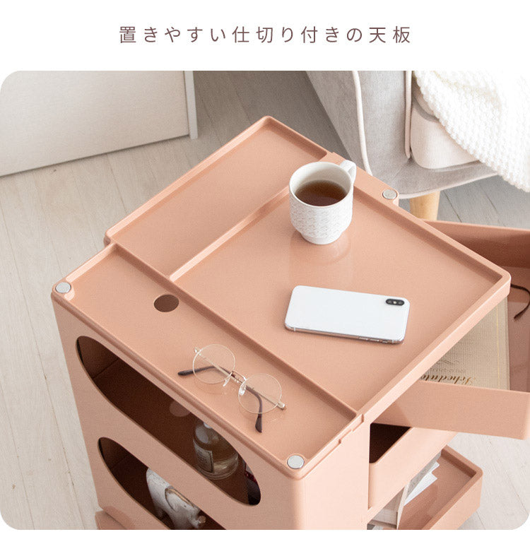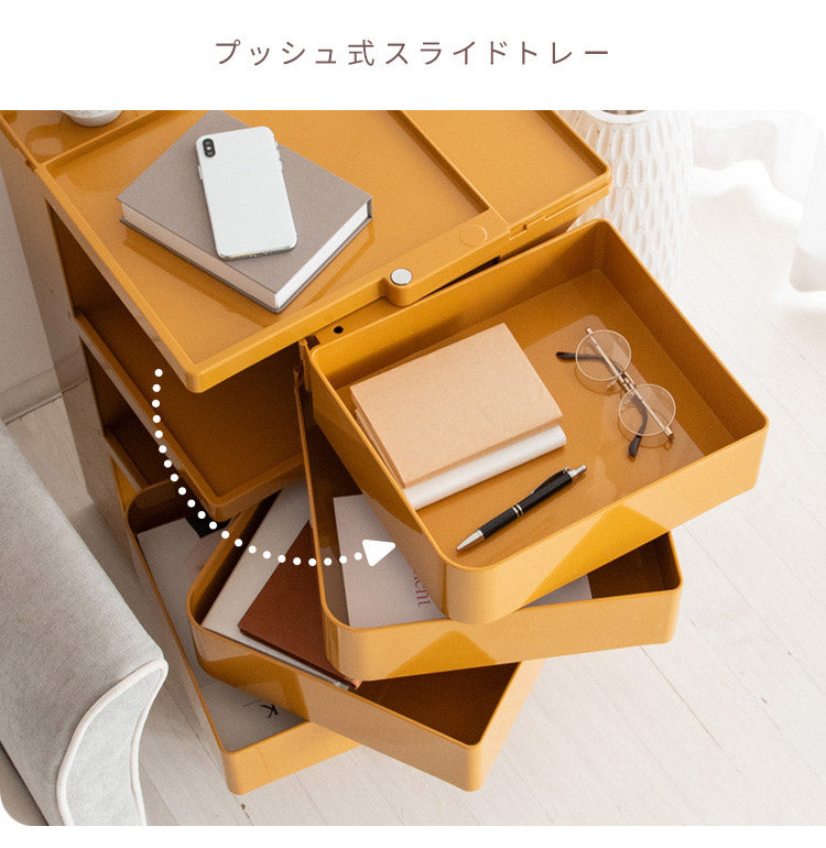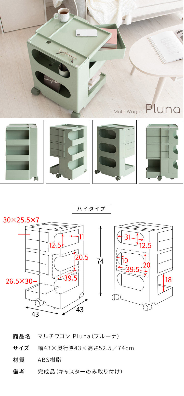 マルチワゴン Pluna プルーナ ハイタイプ キャスター付き四面収納ワゴン 仕切り天板 180度回転 プッシュ式スライドトレー サイドポケット 大容量 収納 キャスター付きかわいい カラフル(代引不可)