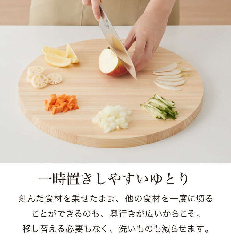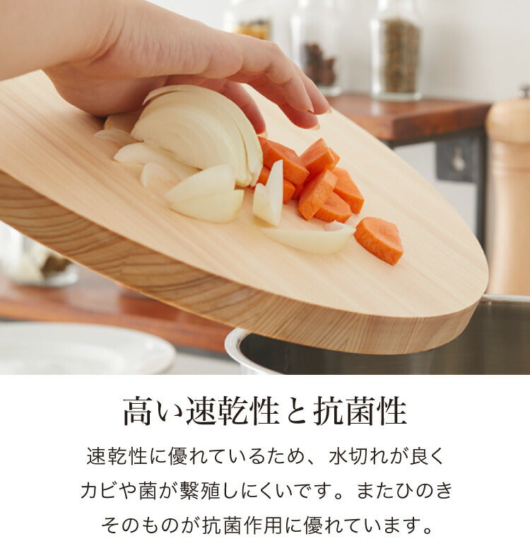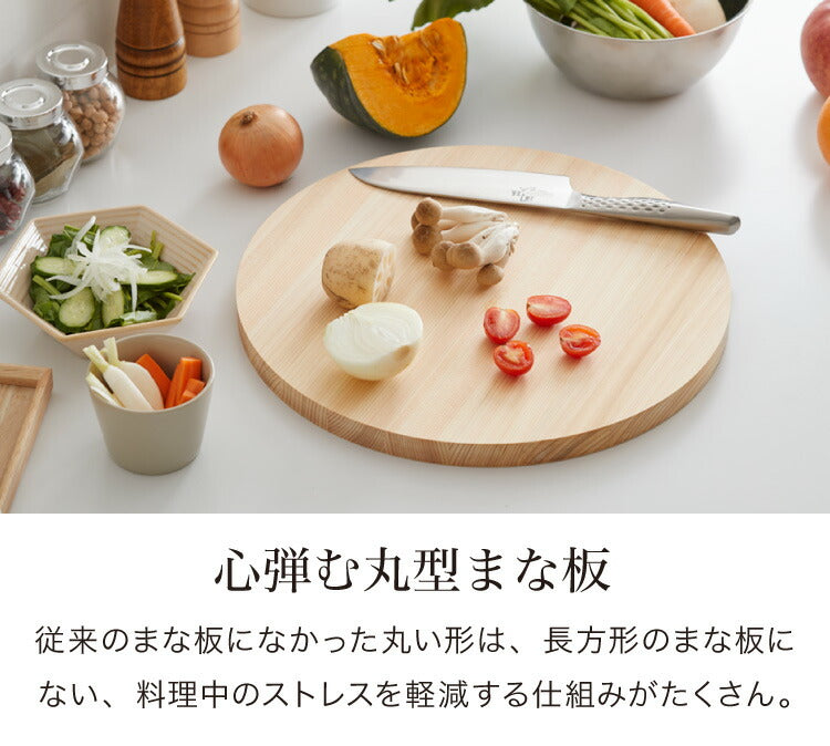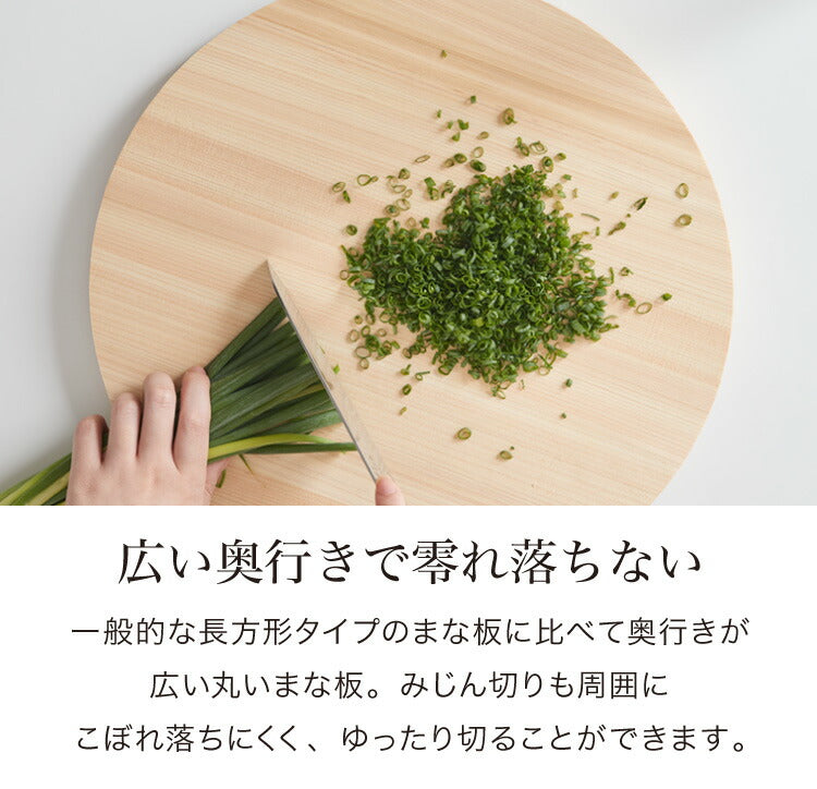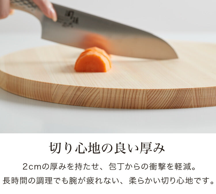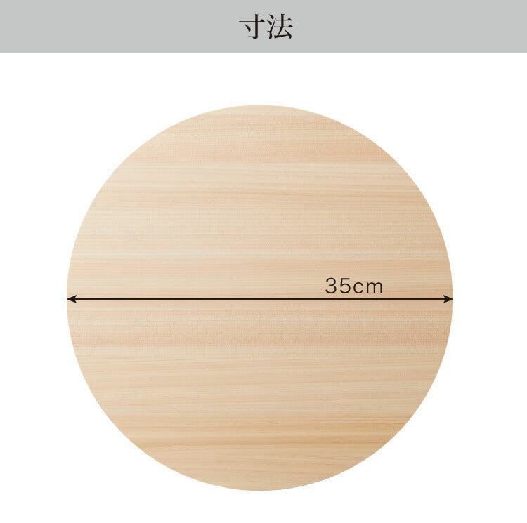 日本製 ひのき 丸いまな板 大 35cm 厚さ2cm 紀伊山地産 国産檜使用 黒ずみ防止加工 まるい まな板 円形 丸形 円型 丸型 ひのき 桧 檜 ヒノキ 木製 軽量 軽い カッティングボード 丸まな板 省スペース