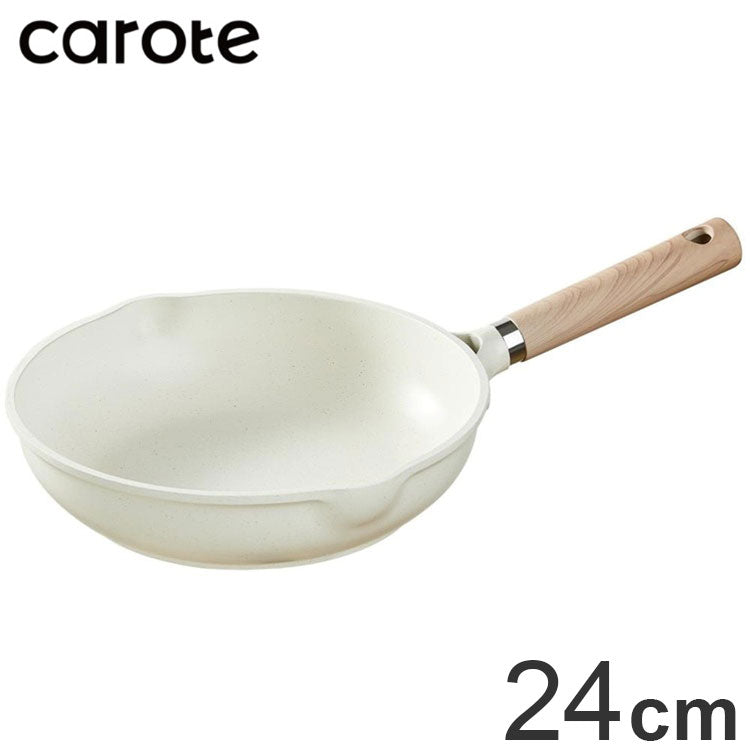 カローテ CAROTE フライパン IH対応 PFOAフリー 深型 24cm ディープパン IH ガス火対応 ふっ素加工 コーティング 注ぎ口付き お手入れ簡単 アイボリー NM-5002 COSY-ICE かわいい おしゃれ