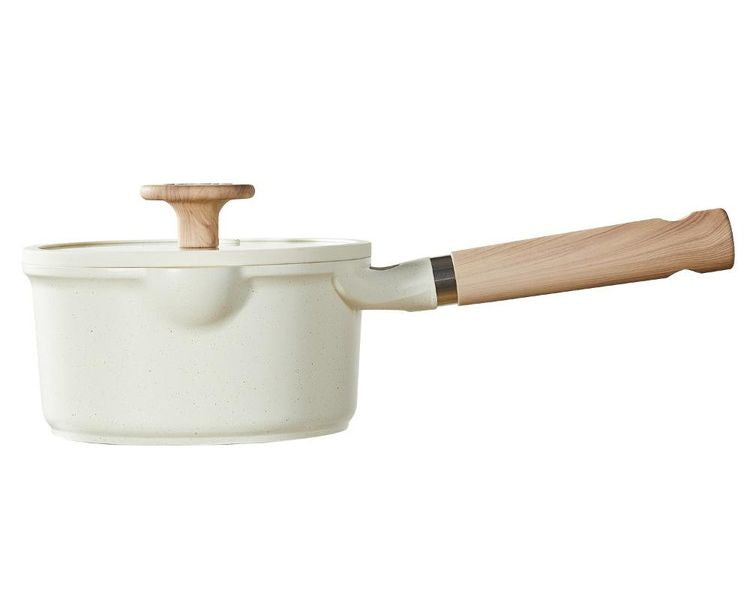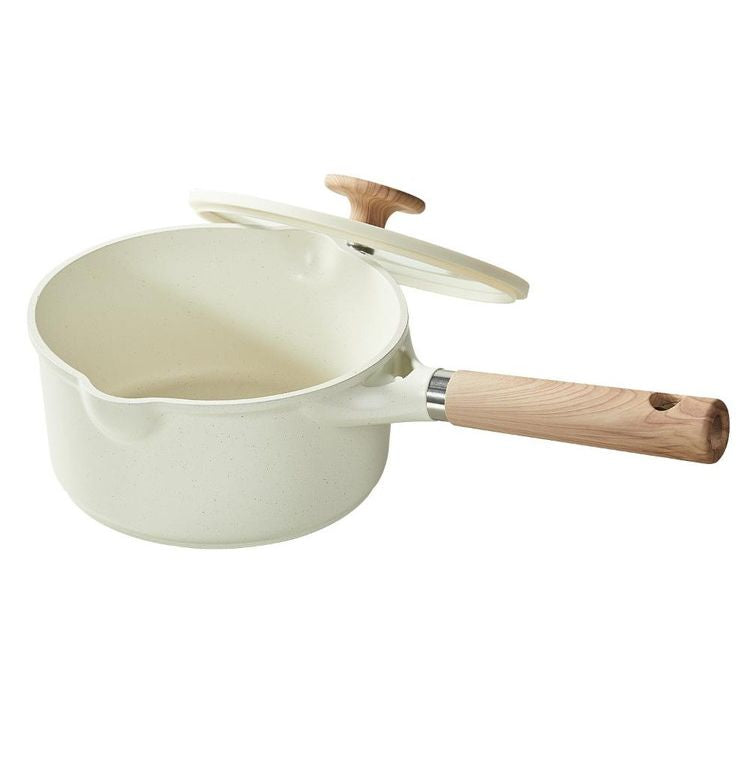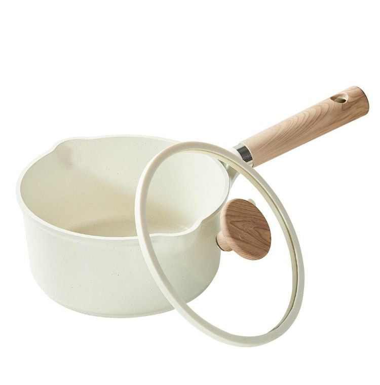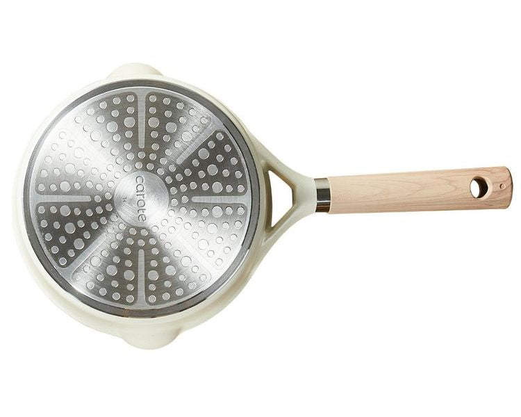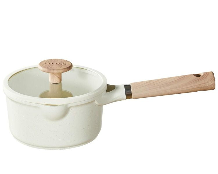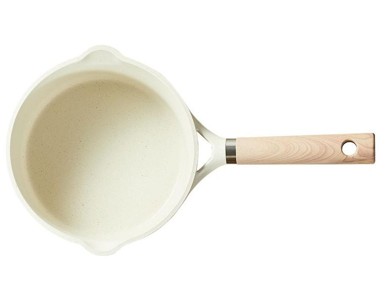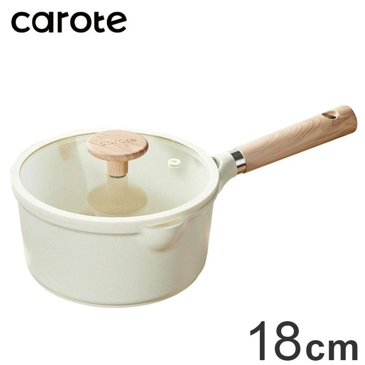 カローテ CAROTE 片手鍋 18cm ガラス蓋セット ソースパン IH対応 PFOAフリー IH ガス火対応 ガラス蓋 ふっ素加工 コーティング 注ぎ口付き お手入れ簡単 アイボリー NM-5010 COSY-ICE かわいい